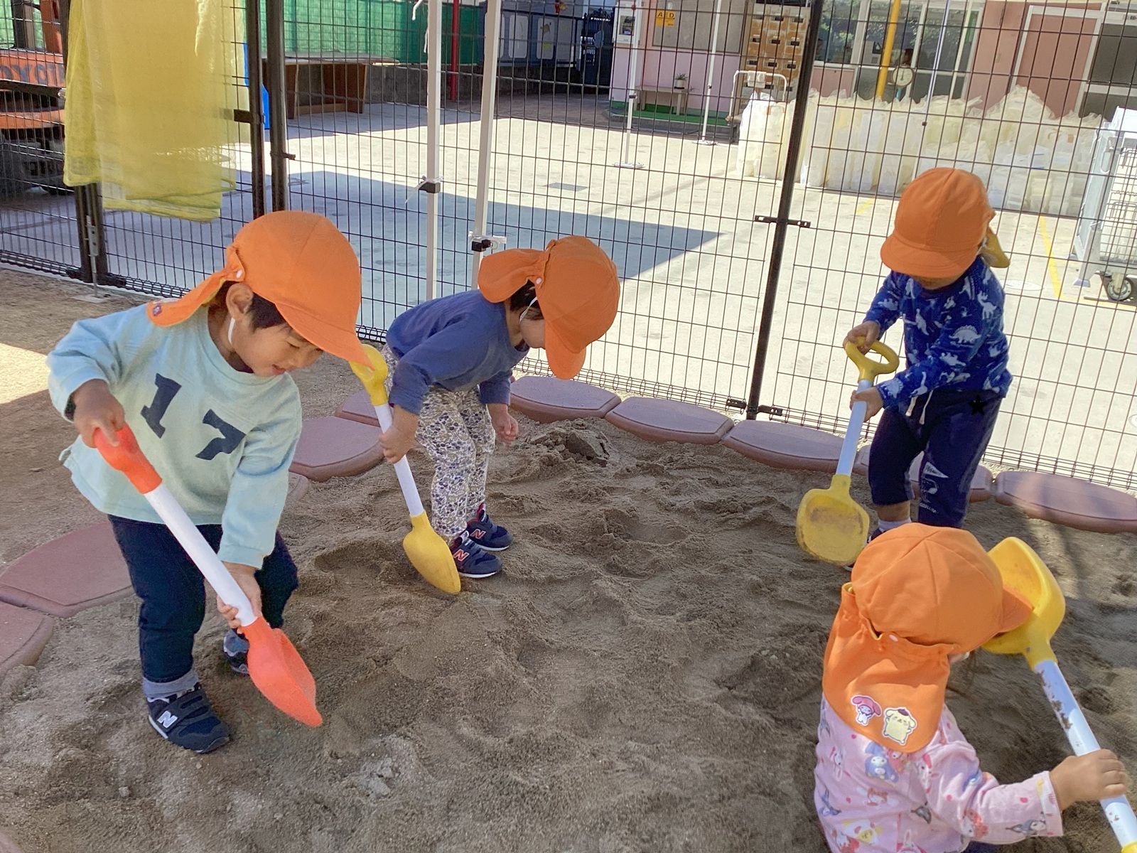 みんなで力を合わせて、大きな穴を掘るぞ!オー!