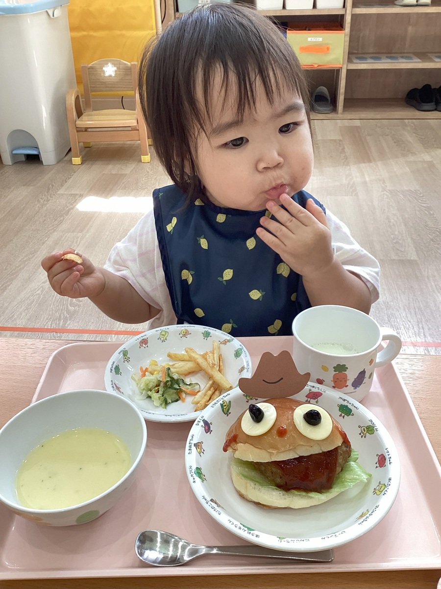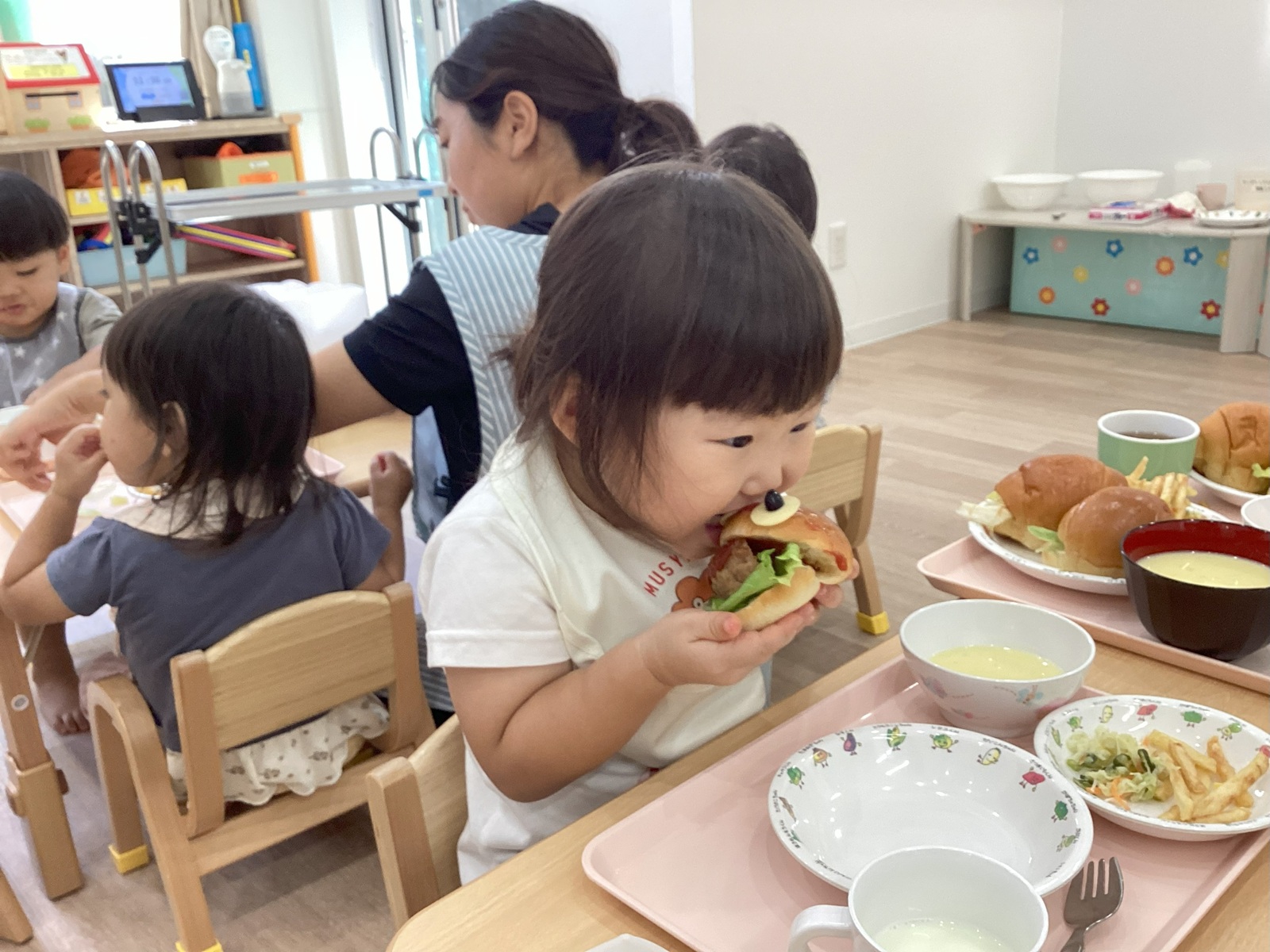 みてみて!わたしのハンバーガーキッド!!手づかみでガブリ!!