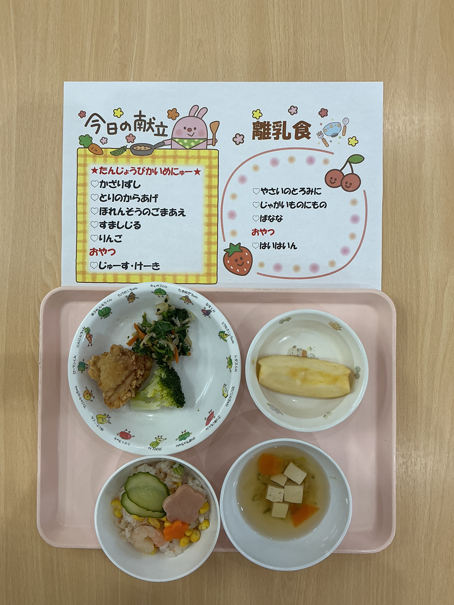 お誕生日会メニューは、みんなの大好きなから揚げでした☆
