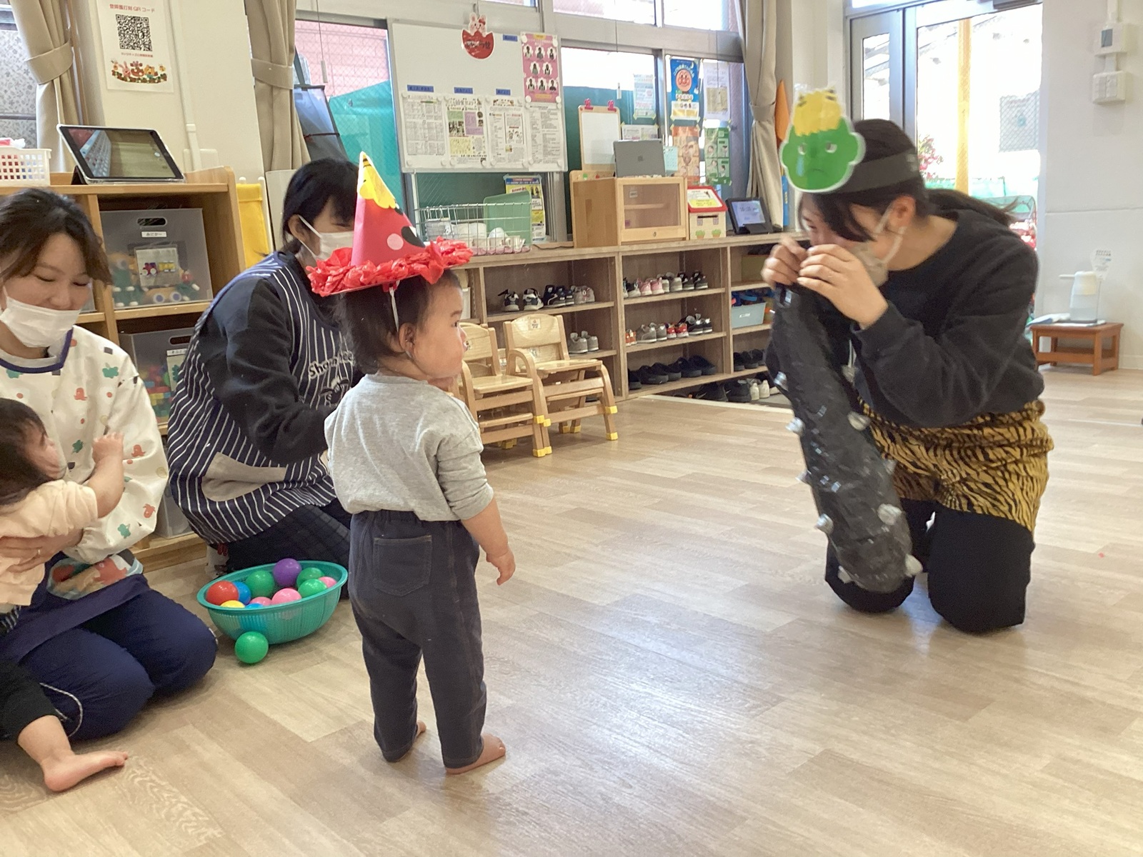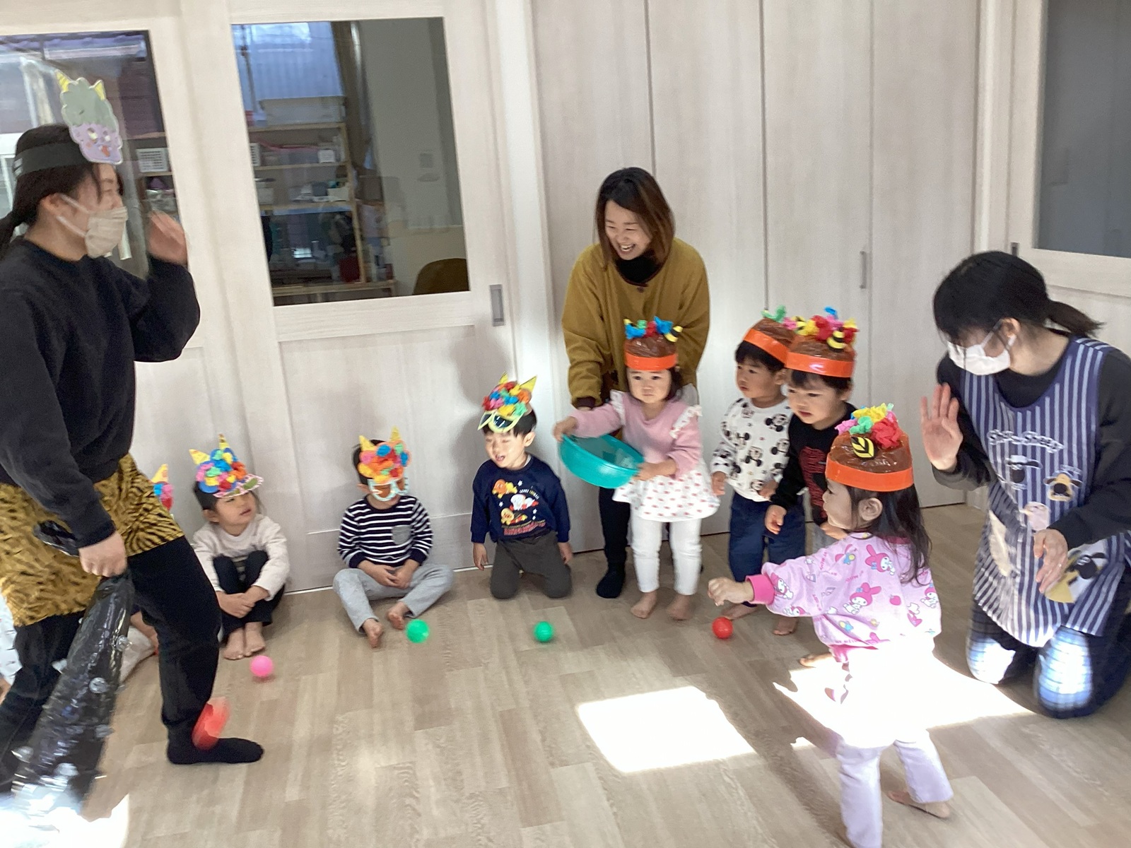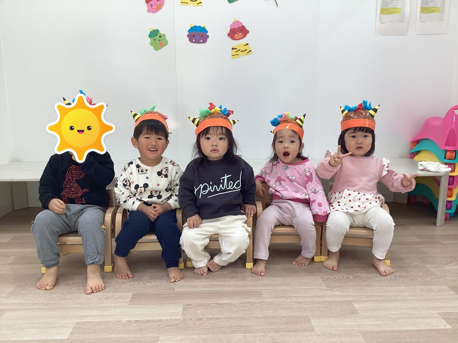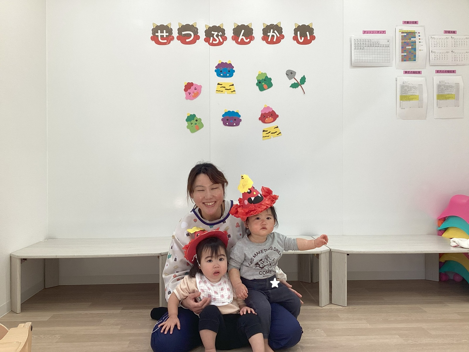 ちょっと怖かったけど、「おにはーそと」「ふくはーうち」しっかり鬼退治をすることができました☆