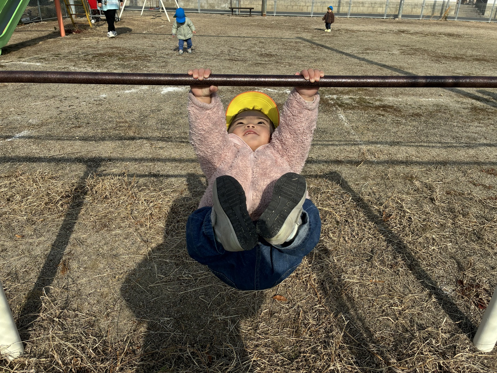 広場でかけっこしたり、鉄棒にぶら下がったりしました!!