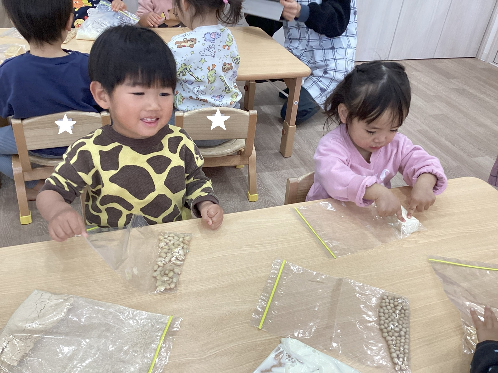 大豆でできものは色々あるんだよ☆触ってみたり匂いをかいでみたりして、確認してみましょう!!