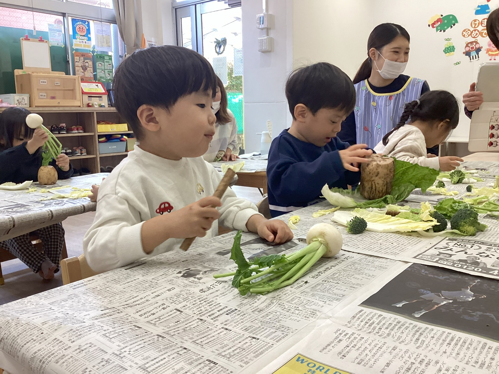 給食先生から、冬野菜のお話をききました☆