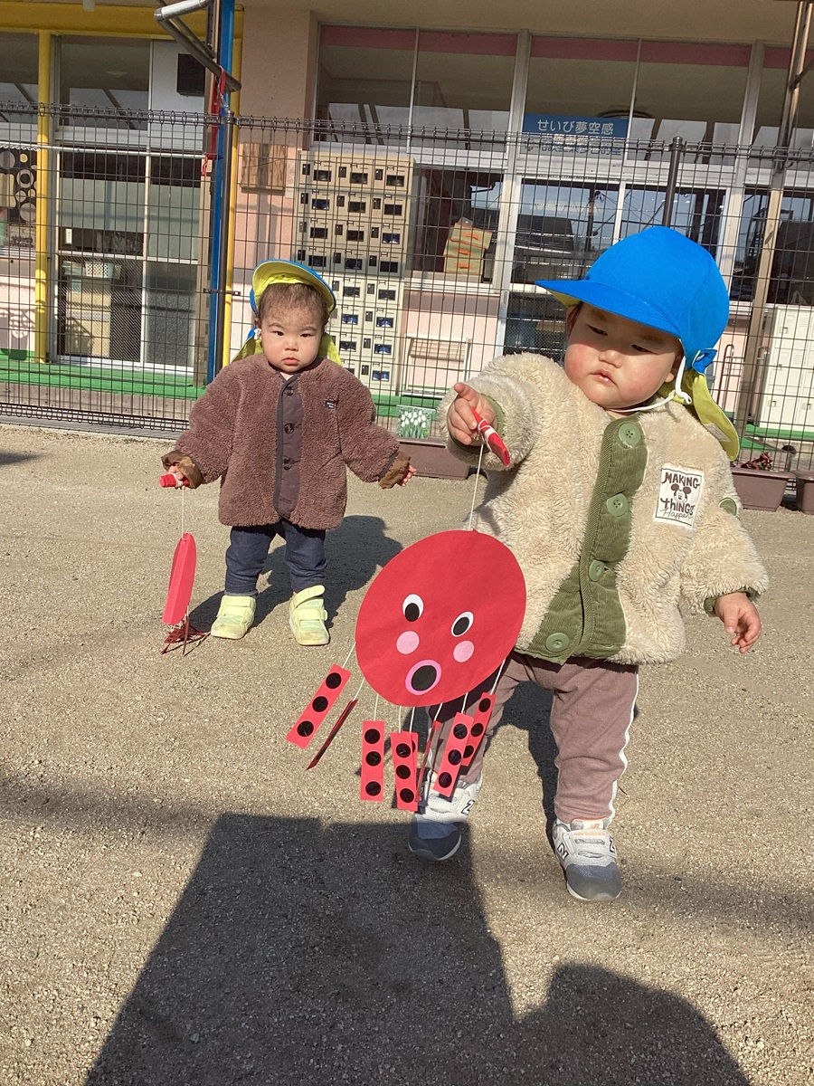 大きいクラスの真似をして、たこあげをしました☆