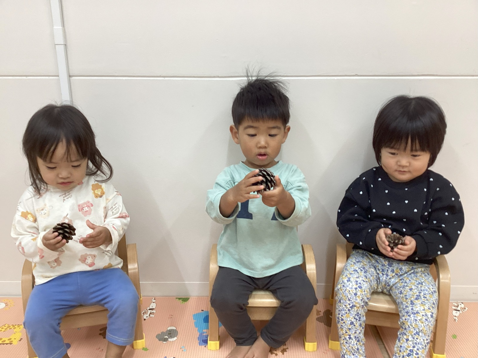 まつぼっくりってカサカサしているんだね☆