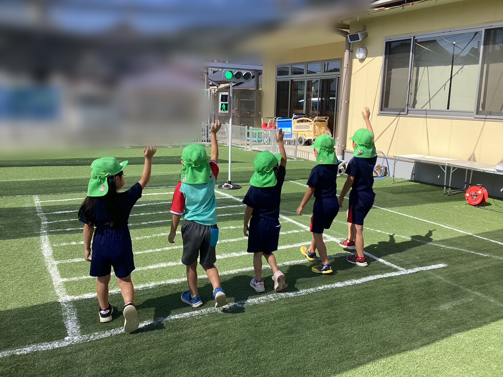 交通指導に参加しました。信号機をしっかり見て渡る練習をしました!