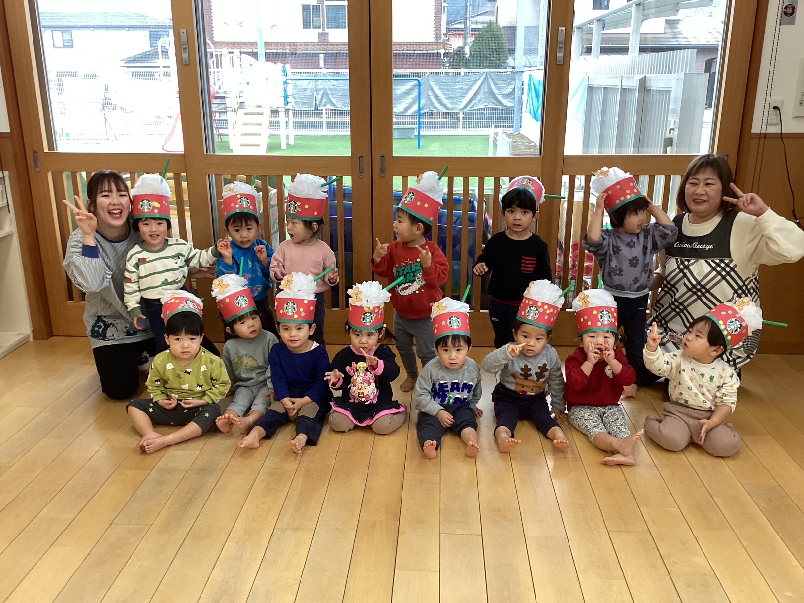 かわいいフラペチーノの帽子を作ってクリスマス会に参加したよ