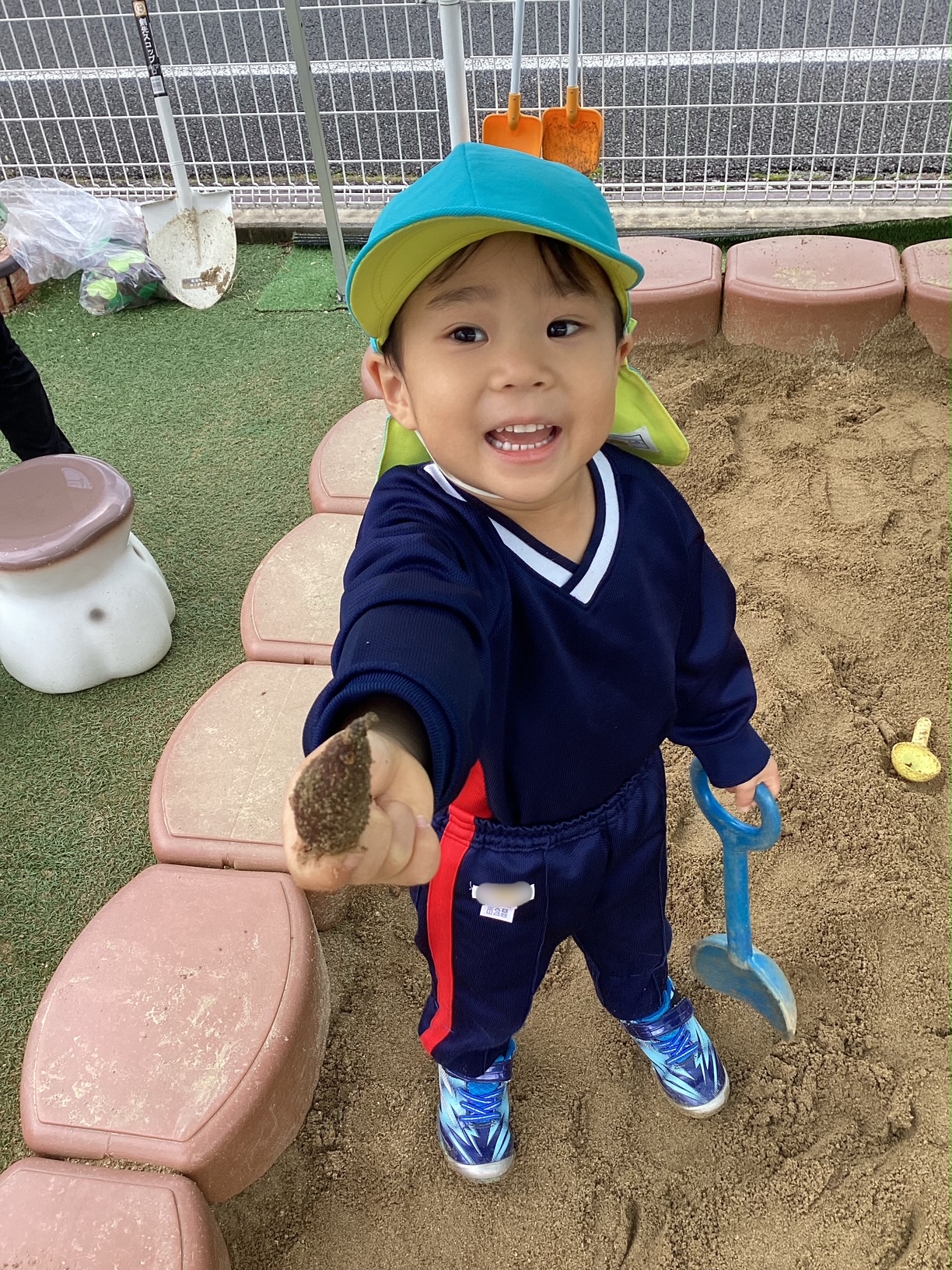 みてみて〜!大きなお芋見つけたよ!とっても嬉しそうです♡
