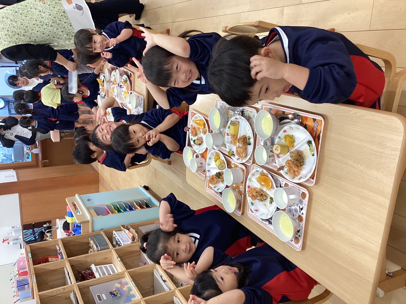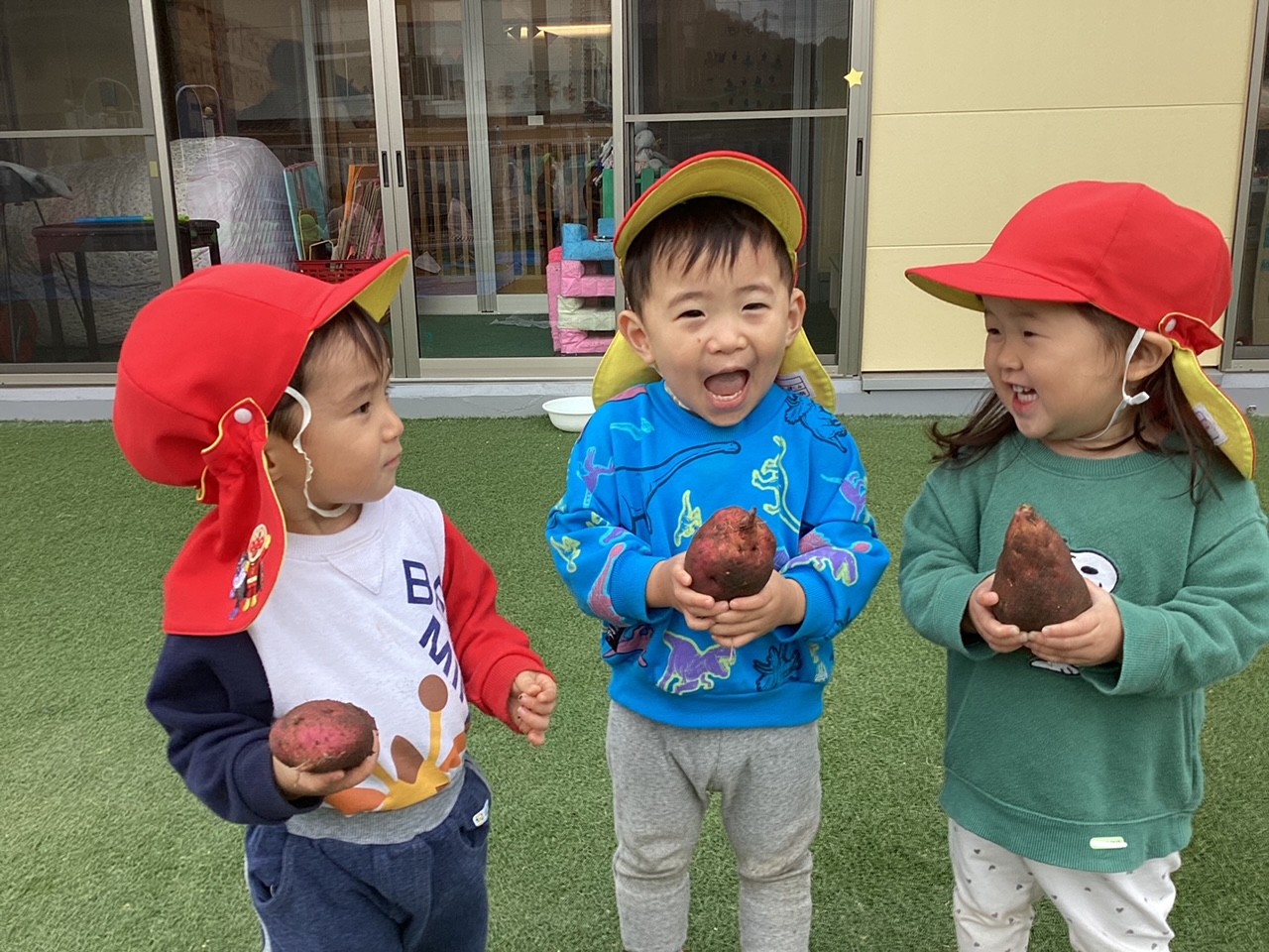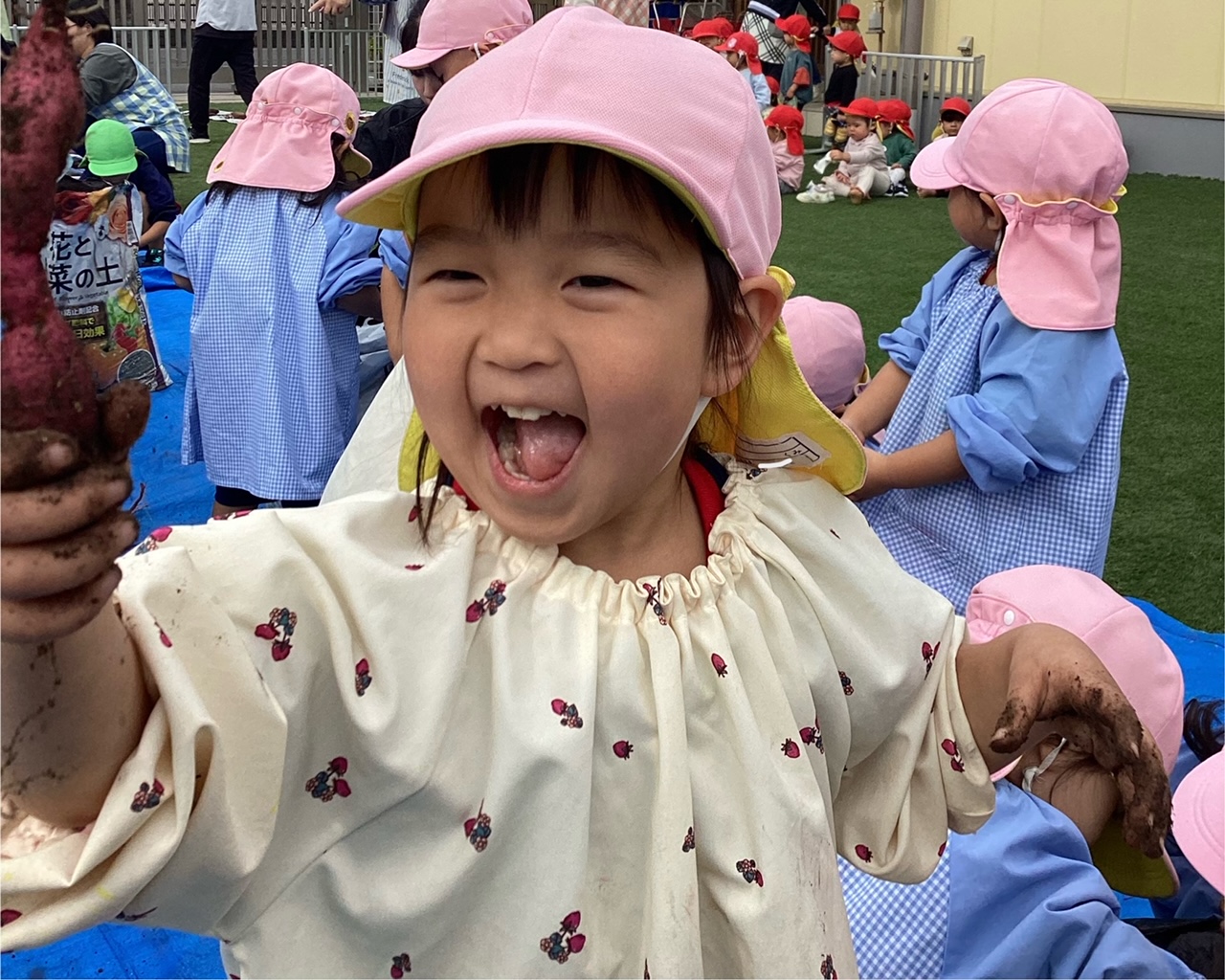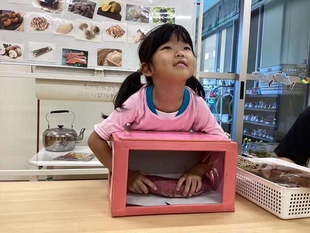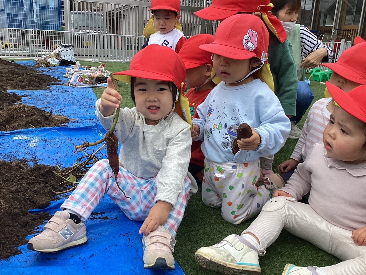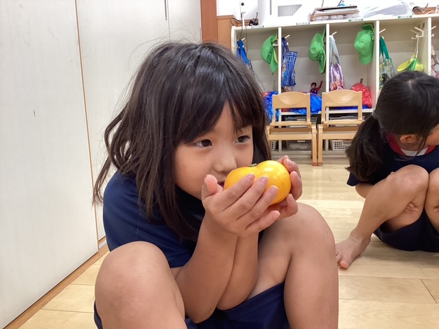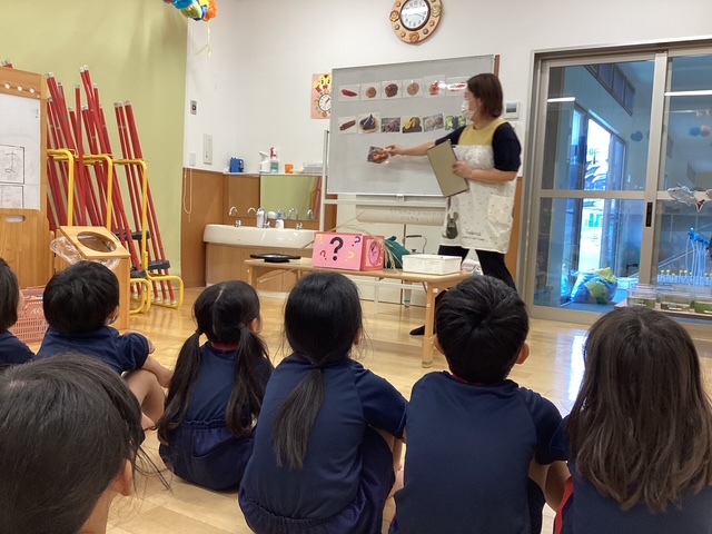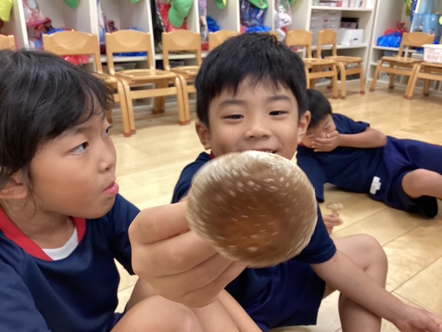 - 普段なかなか触れることのないきのこに興味津々で、楽しそうに触ったりにおってみたりしていました。秋の味覚に触れる活動は、子ども達が自然の恵みや季節の変化を感じ、食への関心を深める貴重な機会です。食育活動を通して、食材と出会い、親しむことで、食べることの楽しさやありがたさを学んでいってほしいです。