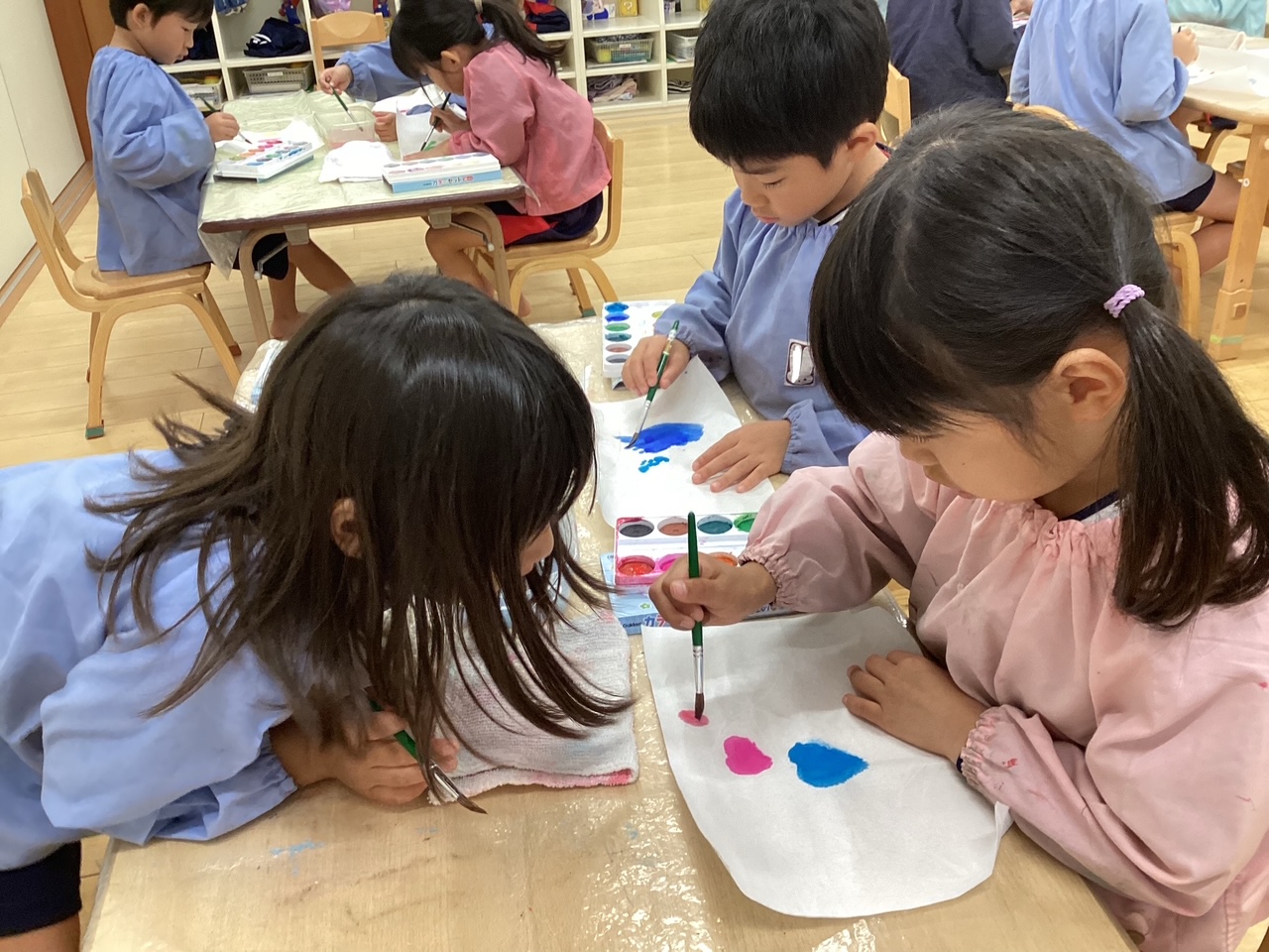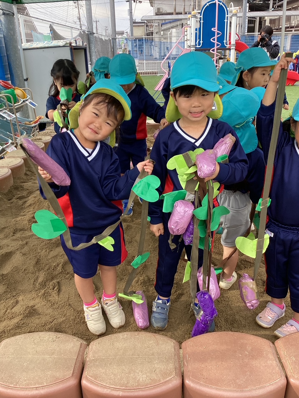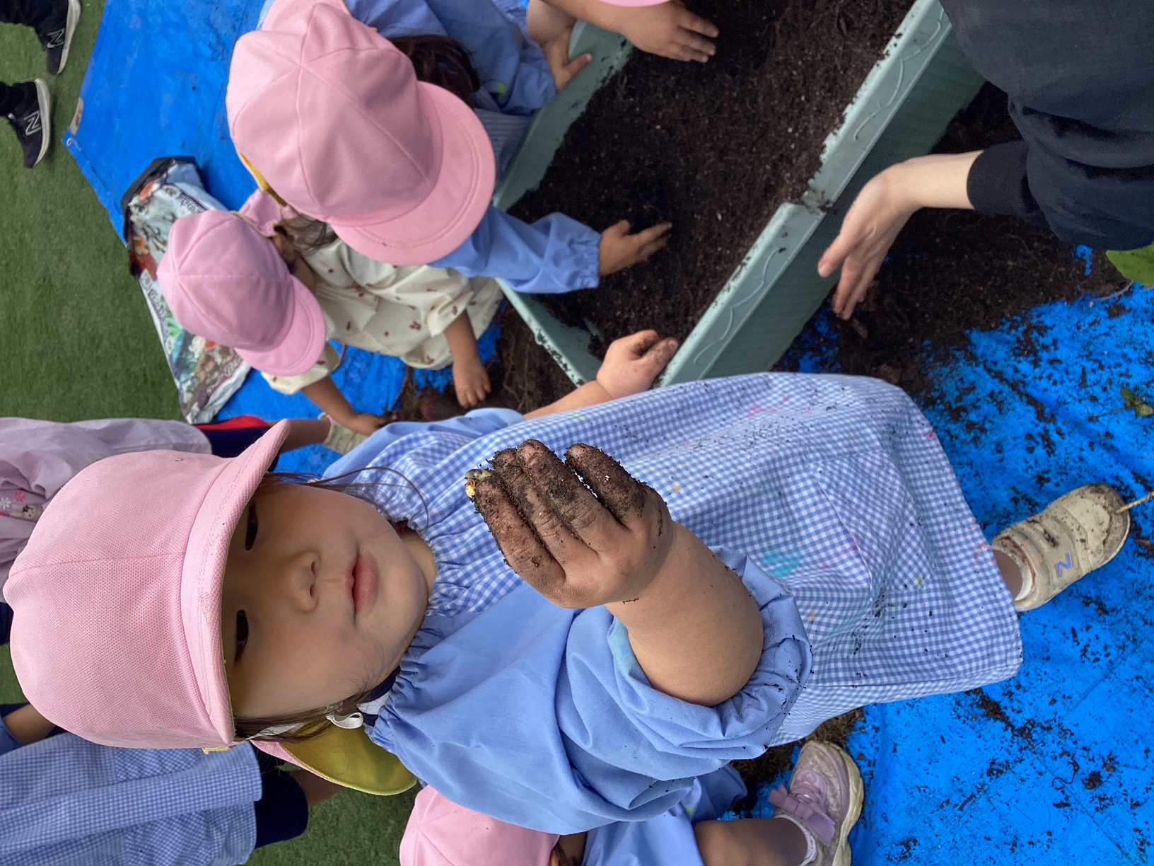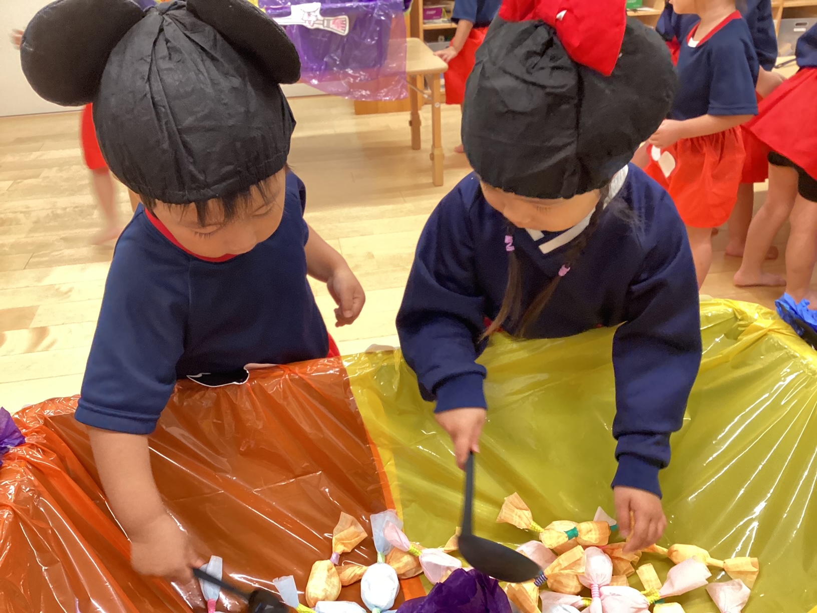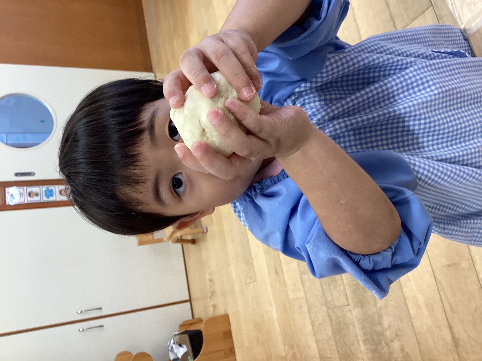 - 普段なかなか触れることのないきのこに興味津々で、楽しそうに触ったりにおってみたりしていました。秋の味覚に触れる活動は、子ども達が自然の恵みや季節の変化を感じ、食への関心を深める貴重な機会です。食育活動を通して、食材と出会い、親しむことで、食べることの楽しさやありがたさを学んでいってほしいです。
