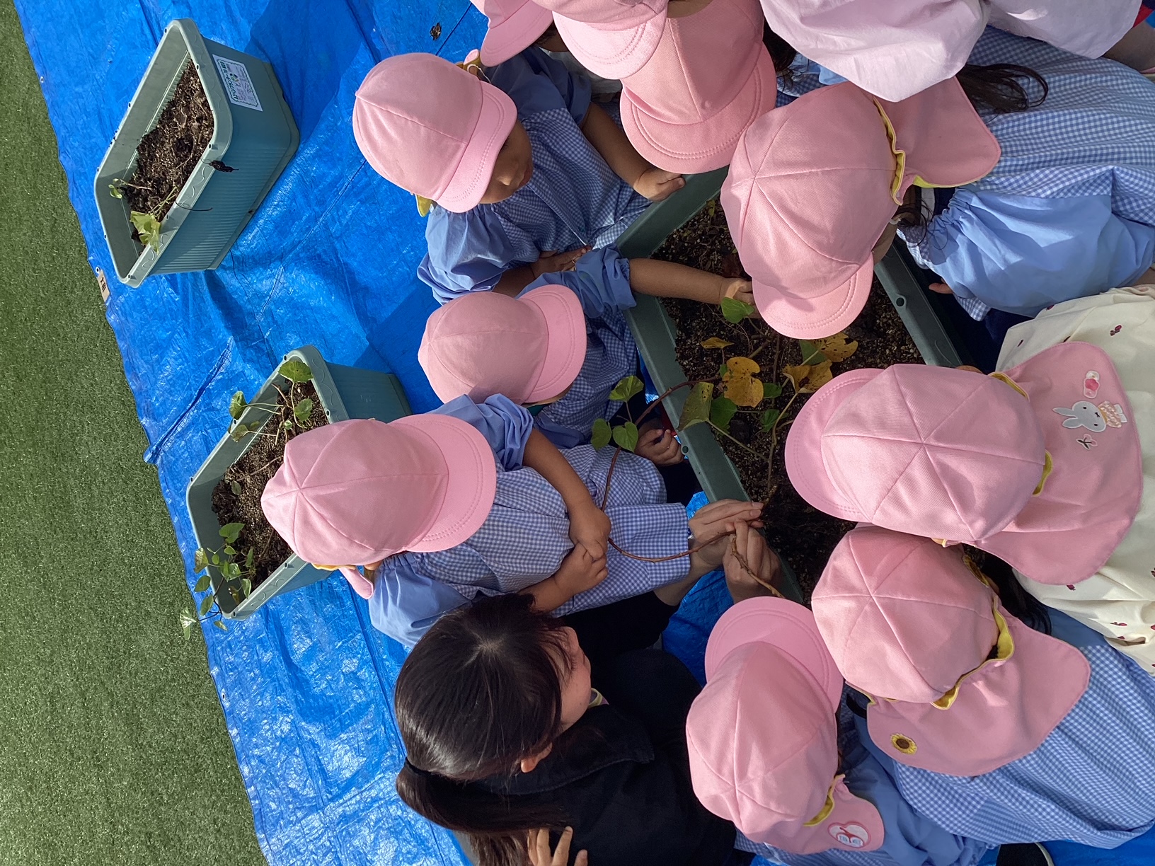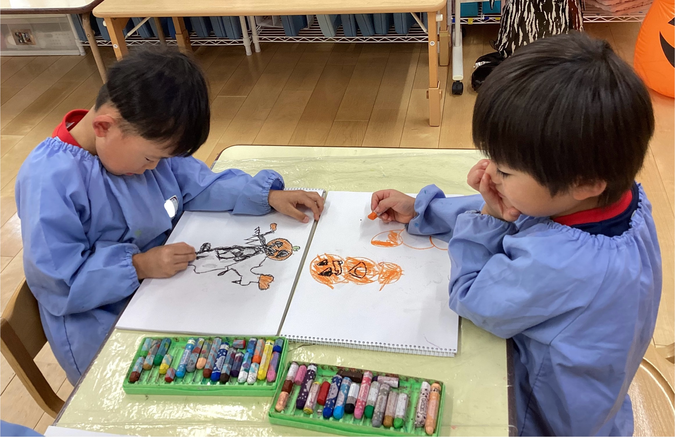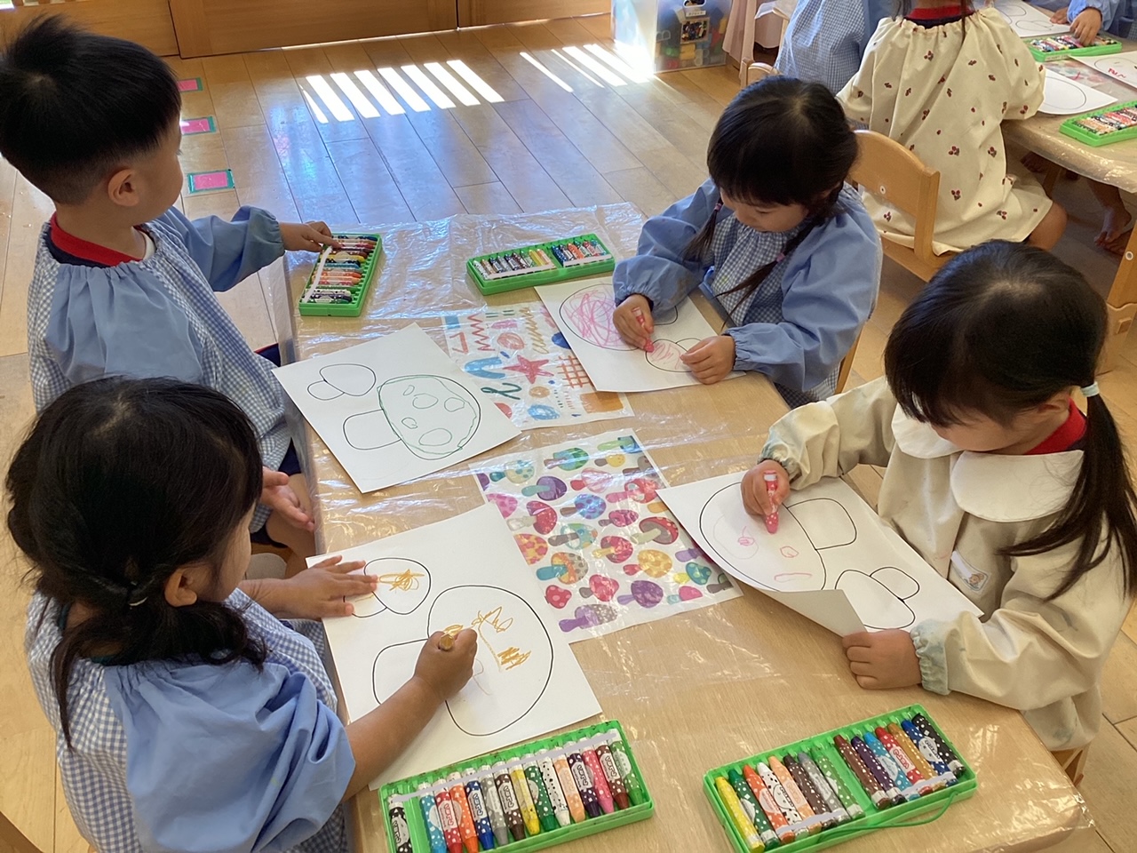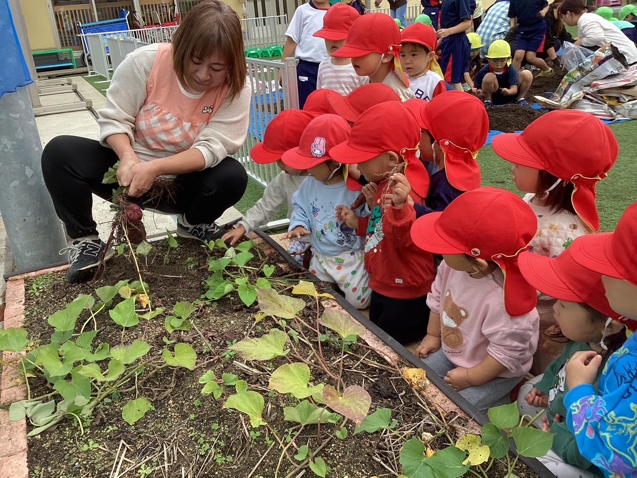 - 普段なかなか触れることのないきのこに興味津々で、楽しそうに触ったりにおってみたりしていました。秋の味覚に触れる活動は、子ども達が自然の恵みや季節の変化を感じ、食への関心を深める貴重な機会です。食育活動を通して、食材と出会い、親しむことで、食べることの楽しさやありがたさを学んでいってほしいです。