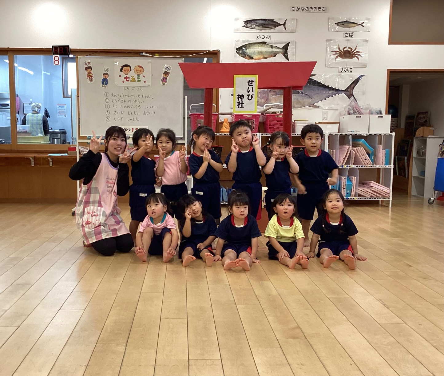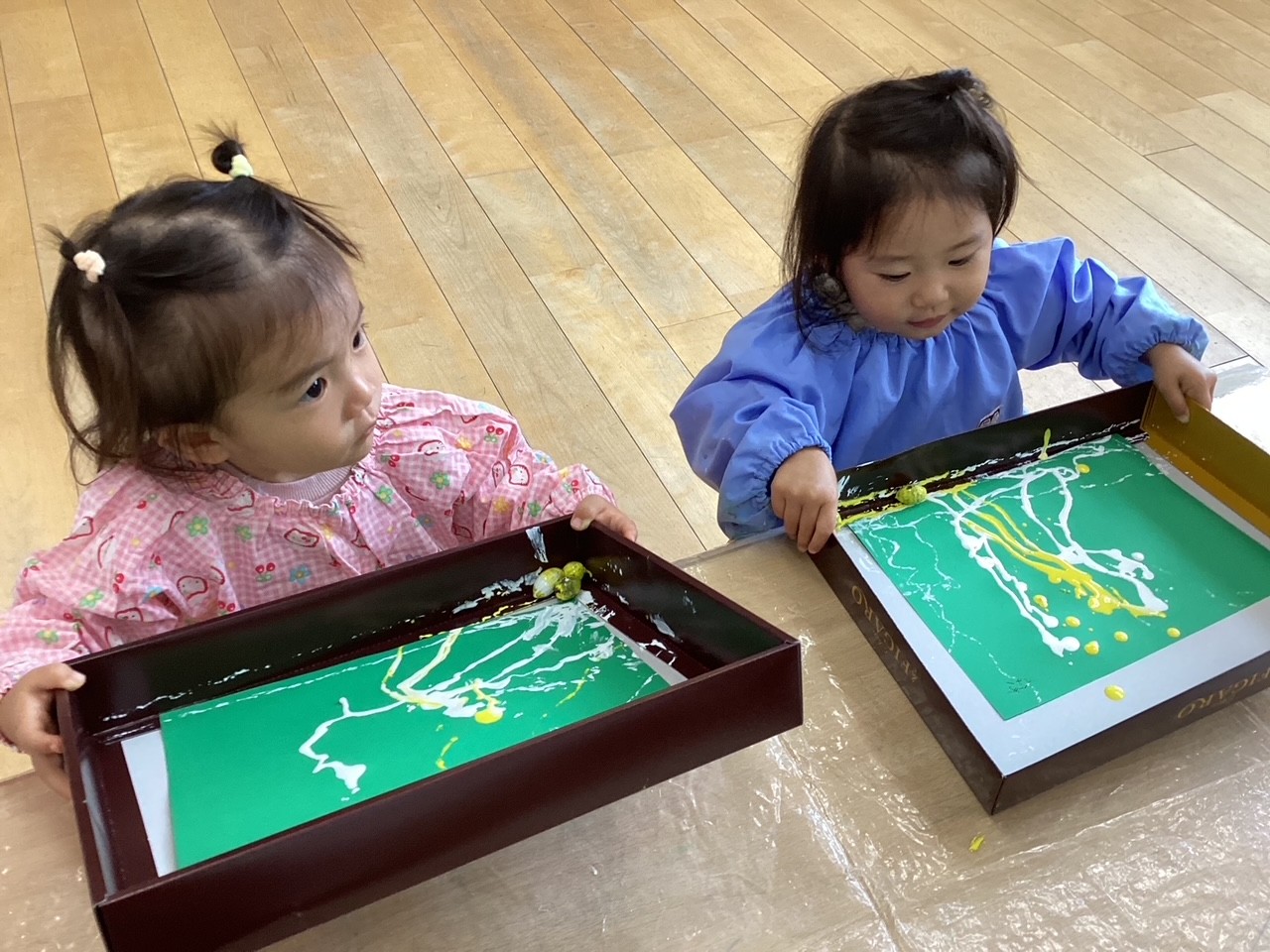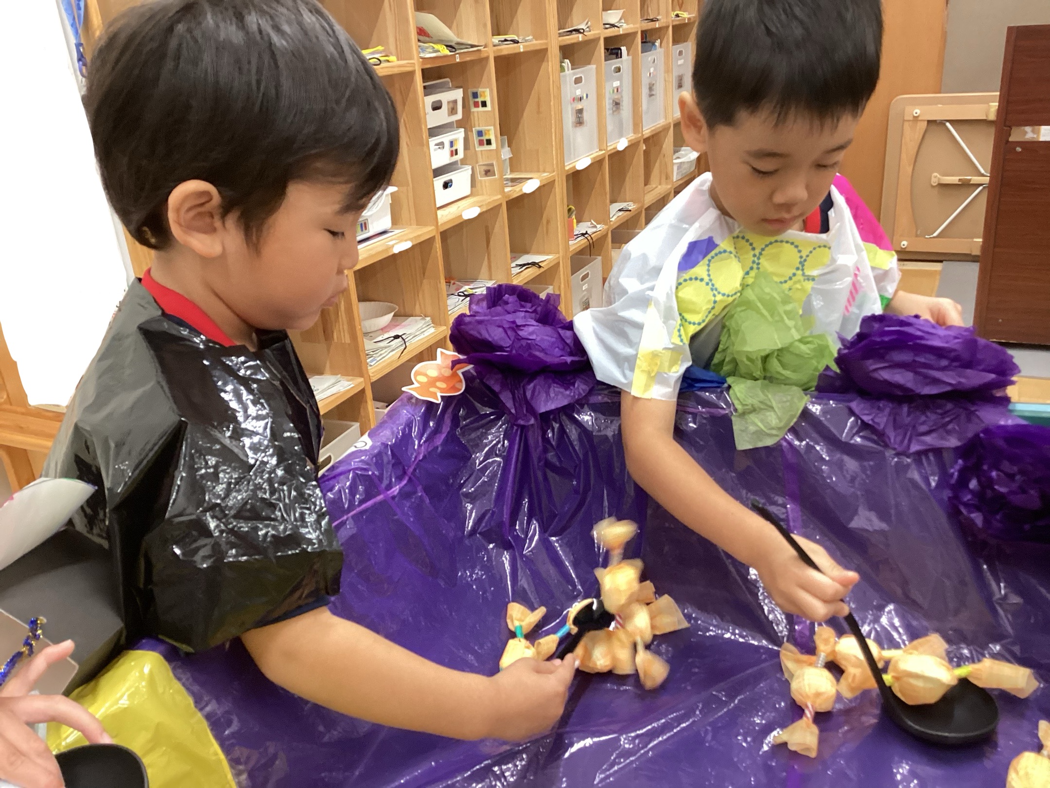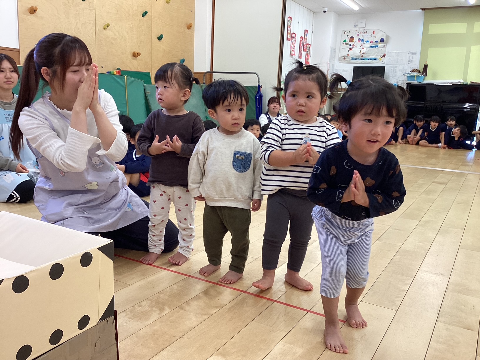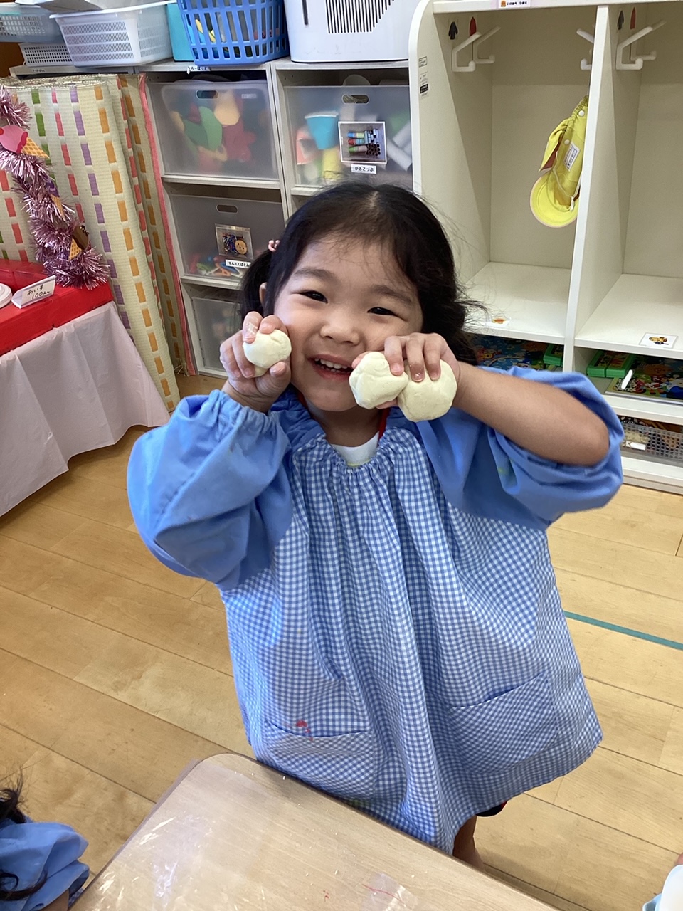 - 普段なかなか触れることのないきのこに興味津々で、楽しそうに触ったりにおってみたりしていました。秋の味覚に触れる活動は、子ども達が自然の恵みや季節の変化を感じ、食への関心を深める貴重な機会です。食育活動を通して、食材と出会い、親しむことで、食べることの楽しさやありがたさを学んでいってほしいです。