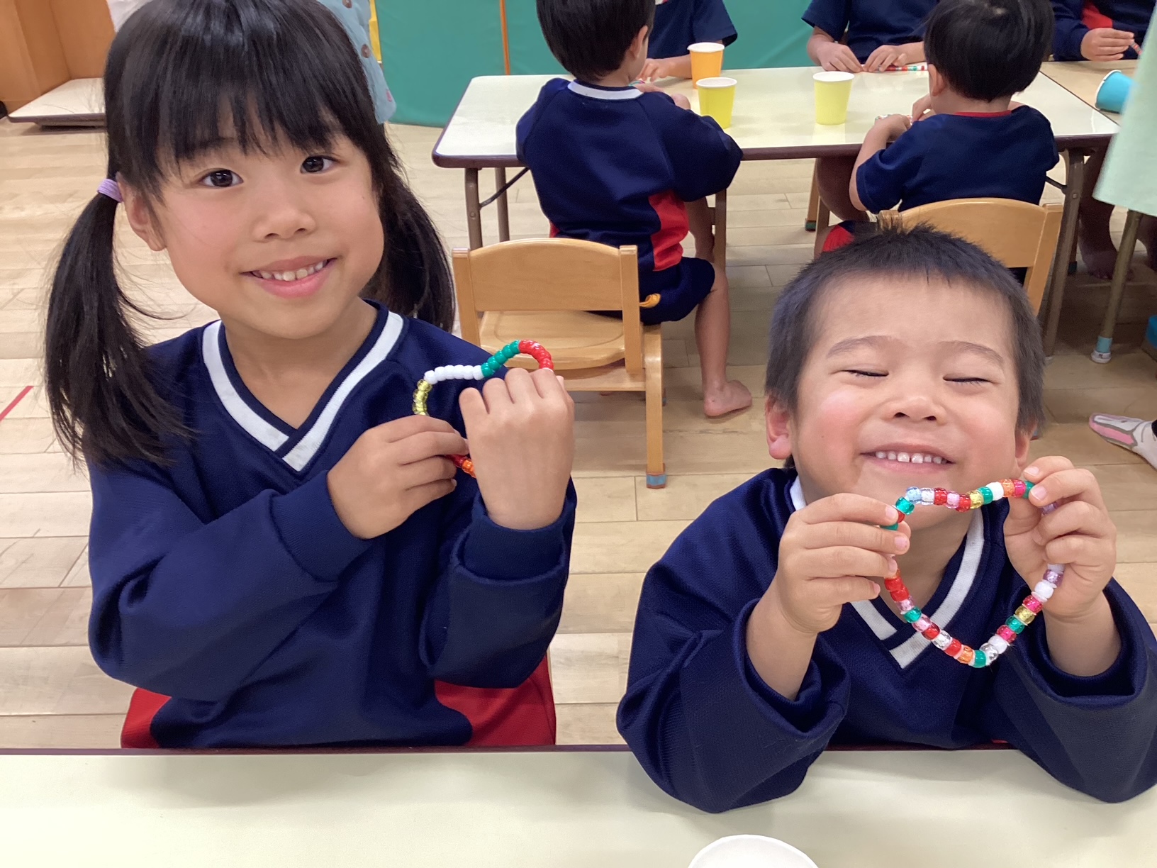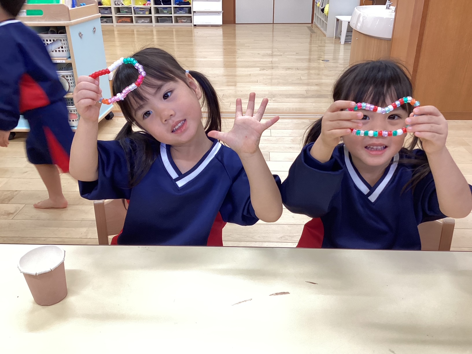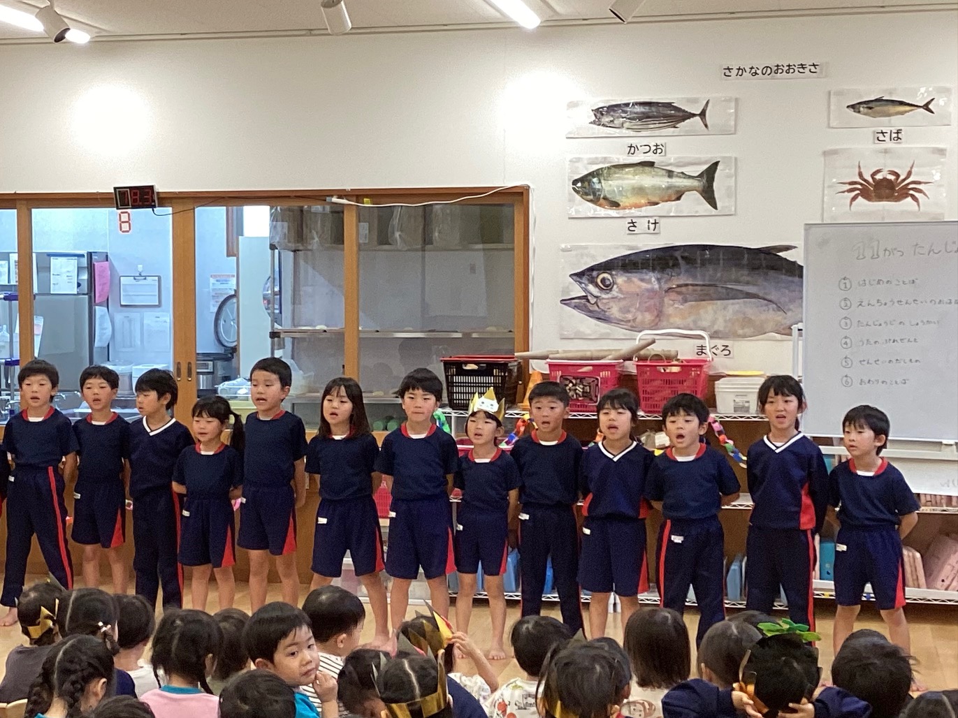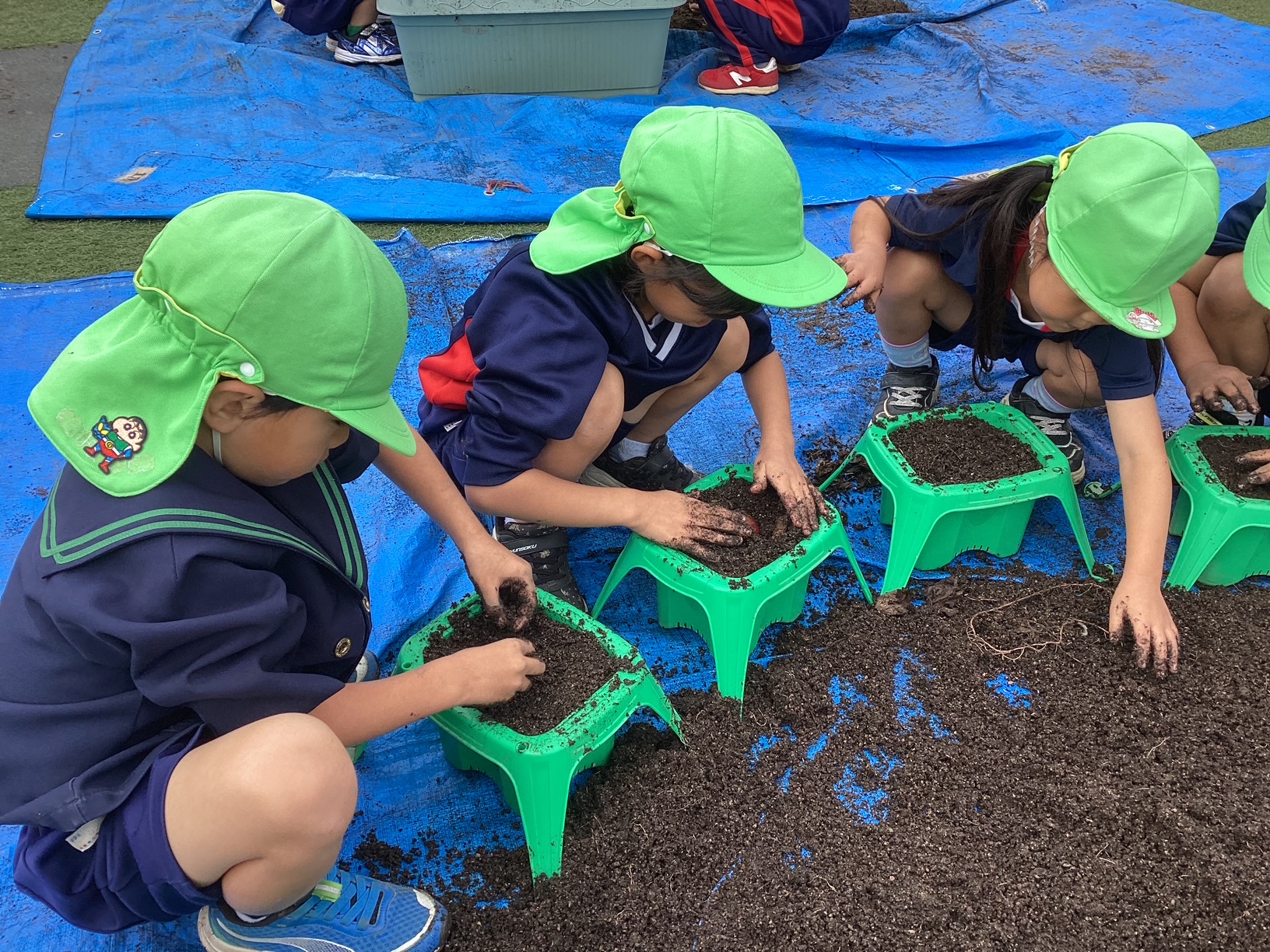 - 普段なかなか触れることのないきのこに興味津々で、楽しそうに触ったりにおってみたりしていました。秋の味覚に触れる活動は、子ども達が自然の恵みや季節の変化を感じ、食への関心を深める貴重な機会です。食育活動を通して、食材と出会い、親しむことで、食べることの楽しさやありがたさを学んでいってほしいです。
