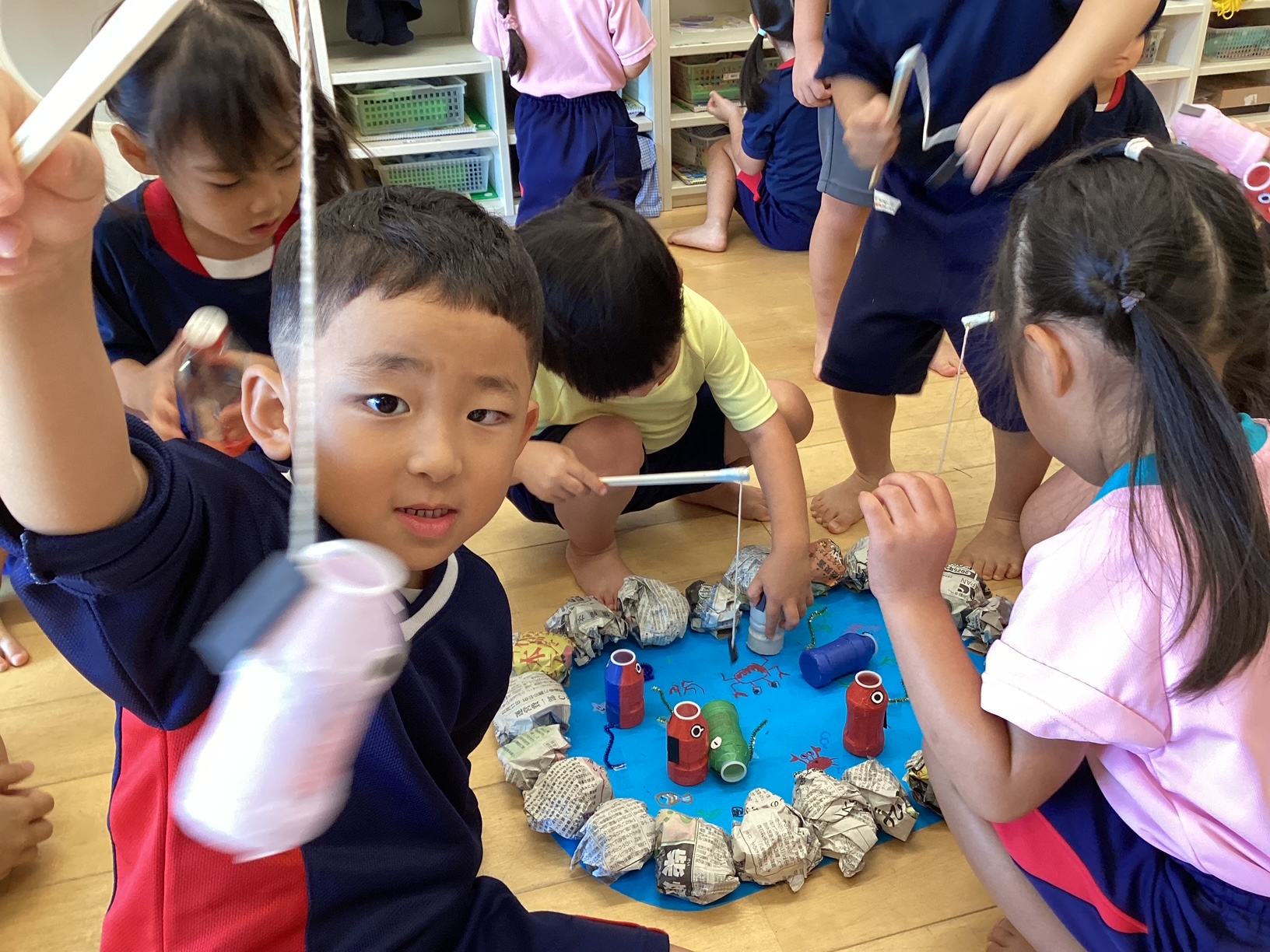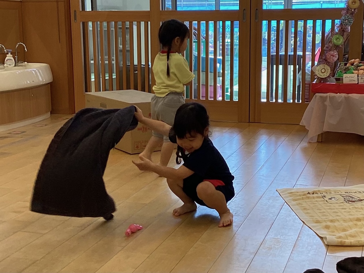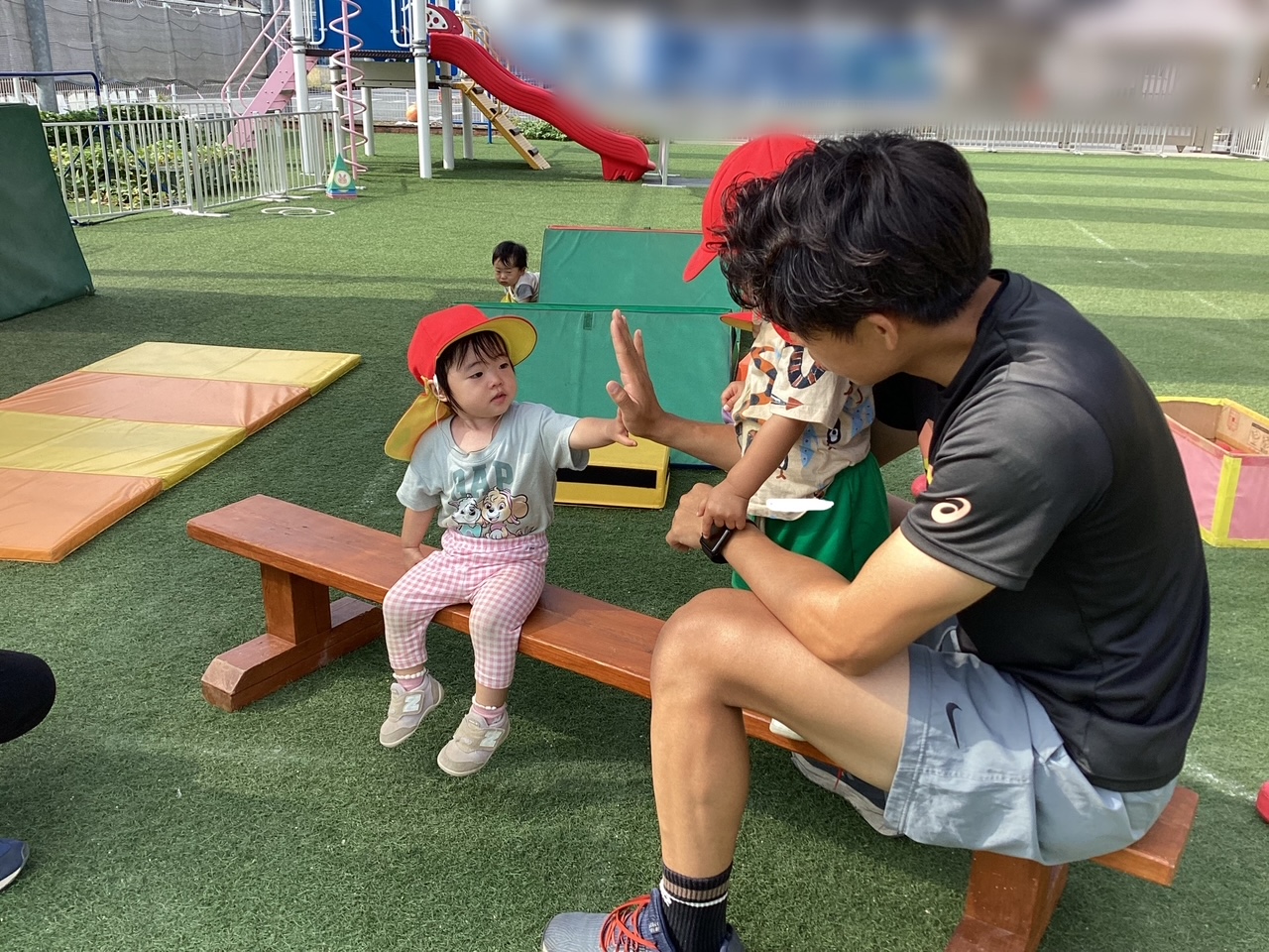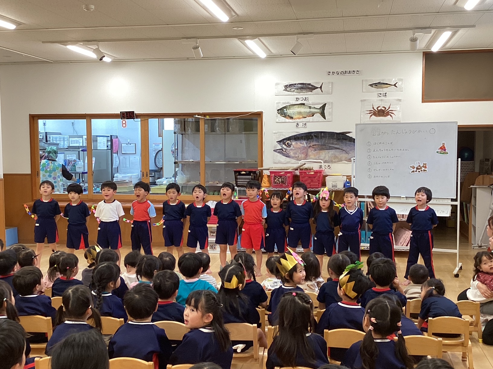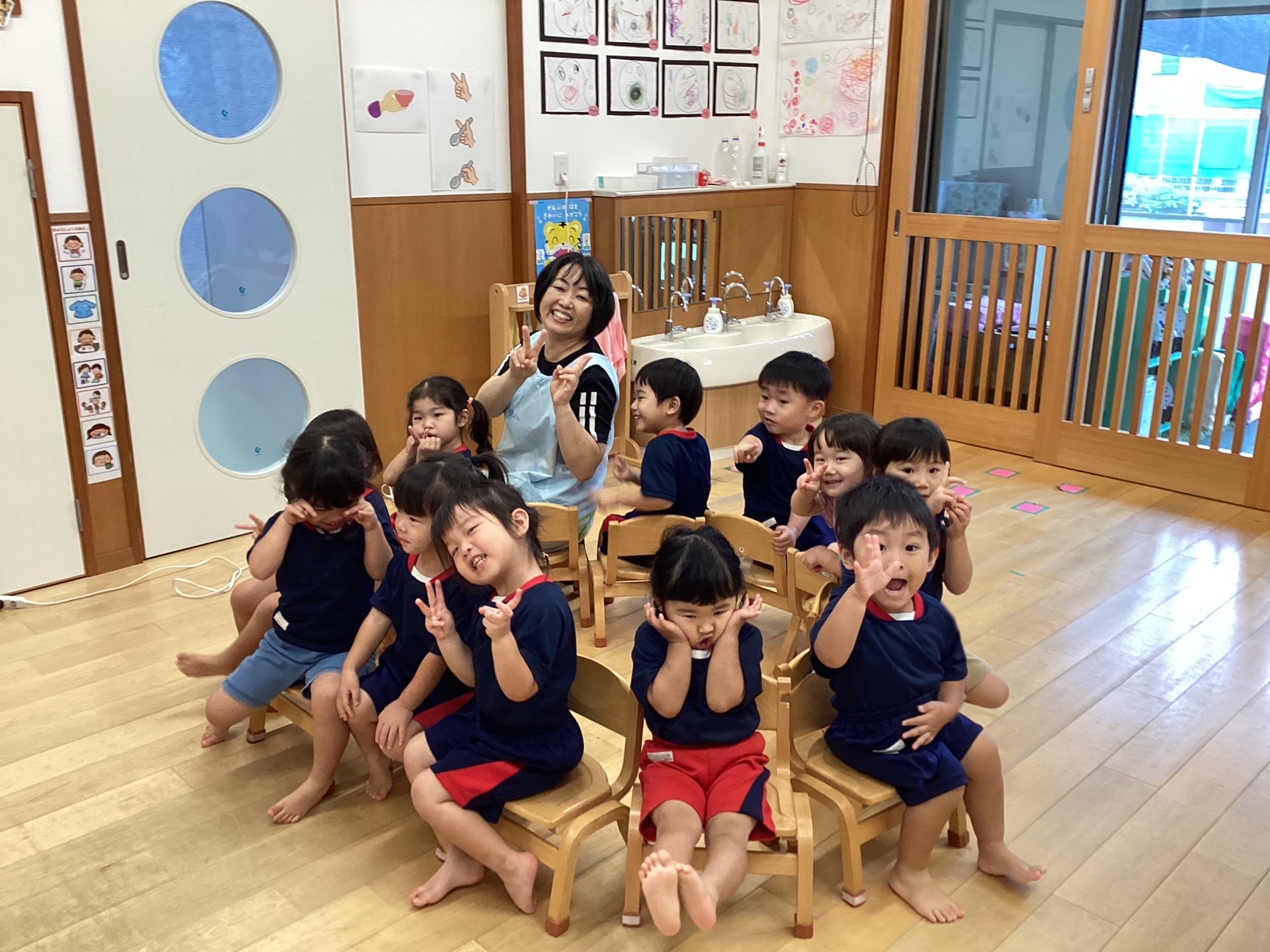 - 普段なかなか触れることのないきのこに興味津々で、楽しそうに触ったりにおってみたりしていました。秋の味覚に触れる活動は、子ども達が自然の恵みや季節の変化を感じ、食への関心を深める貴重な機会です。食育活動を通して、食材と出会い、親しむことで、食べることの楽しさやありがたさを学んでいってほしいです。