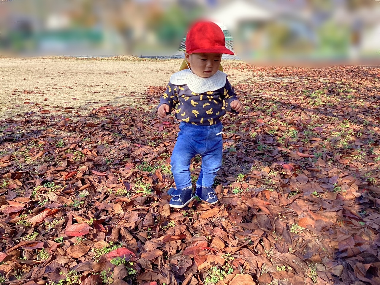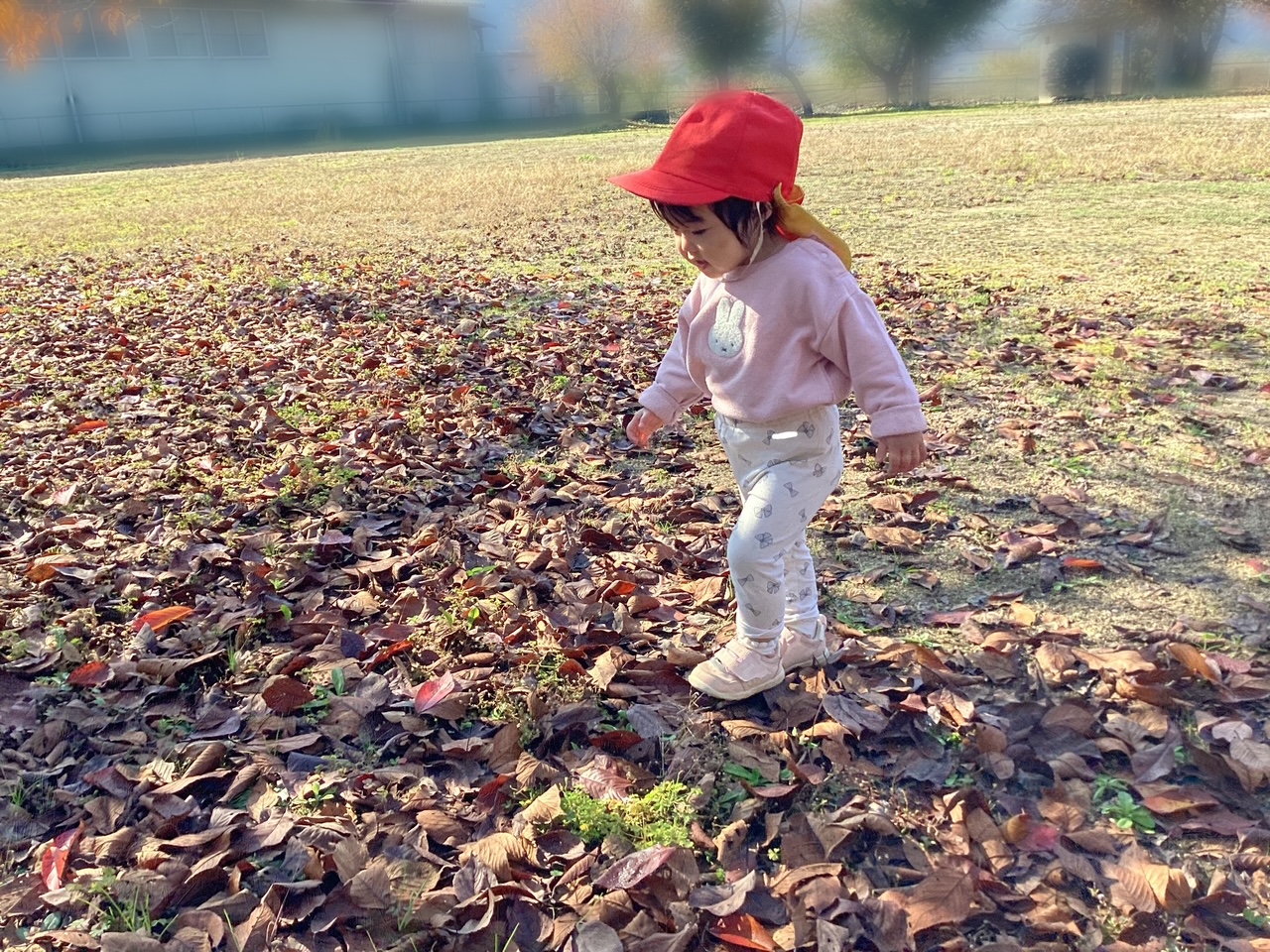 落ち葉を踏んだり触ったりを繰り返し、楽しそうな子どもたちです♪