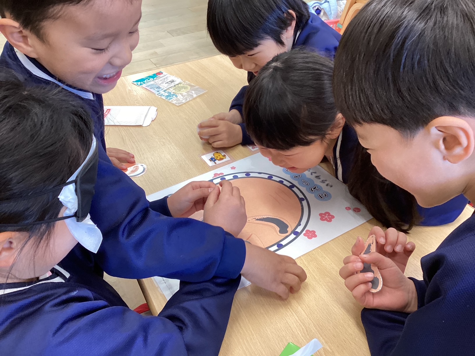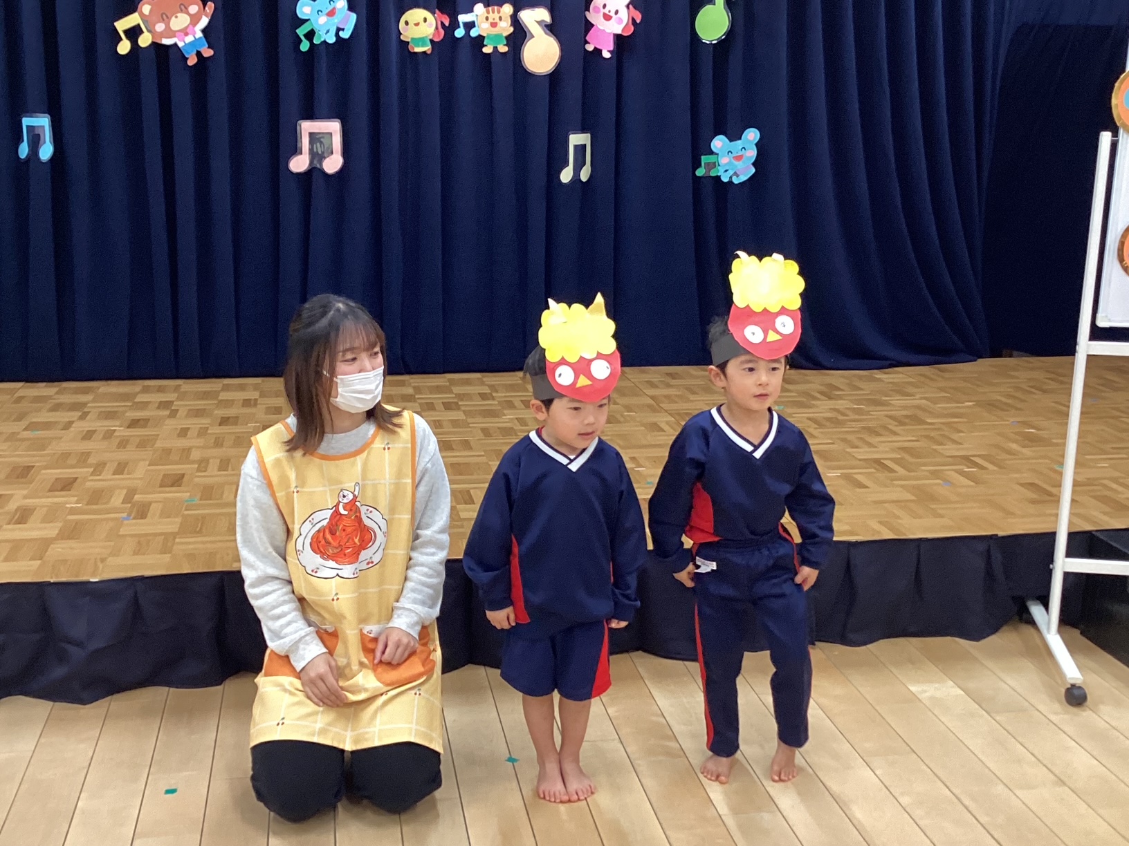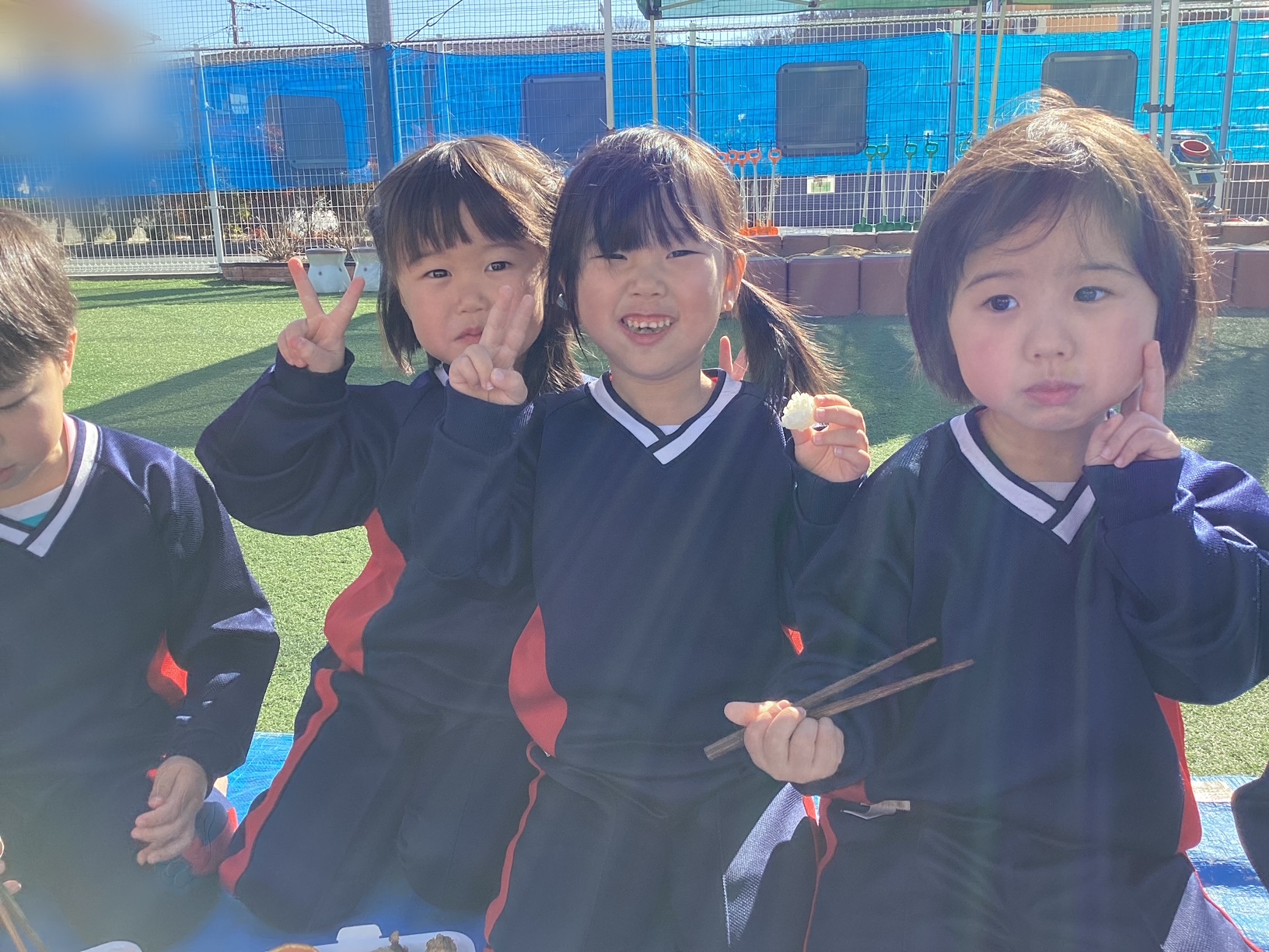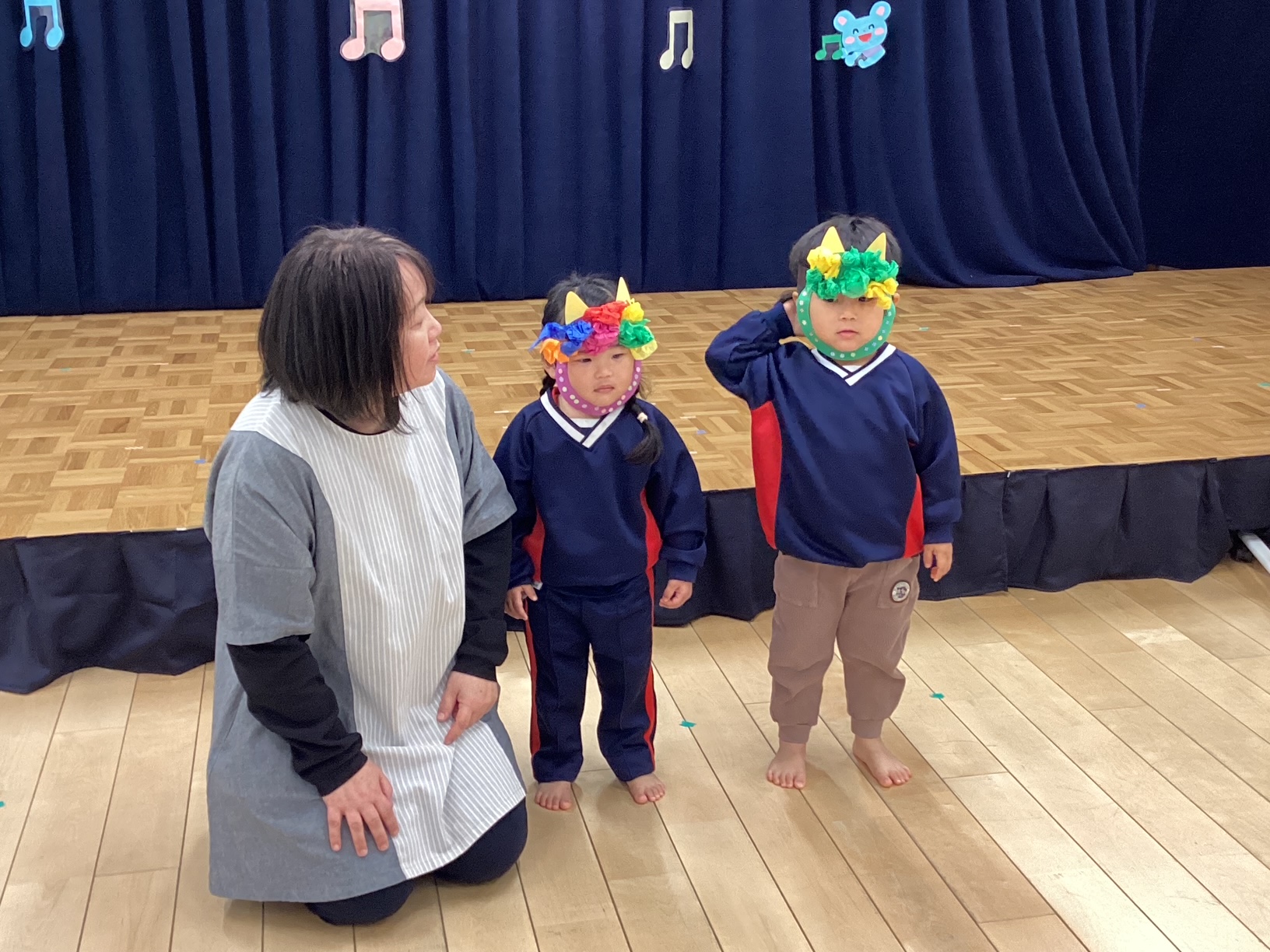 2月3日は節分の日!節分会が行われ、全クラス参加をしました! 豆まきの由来を先生に教えてもらいました♪