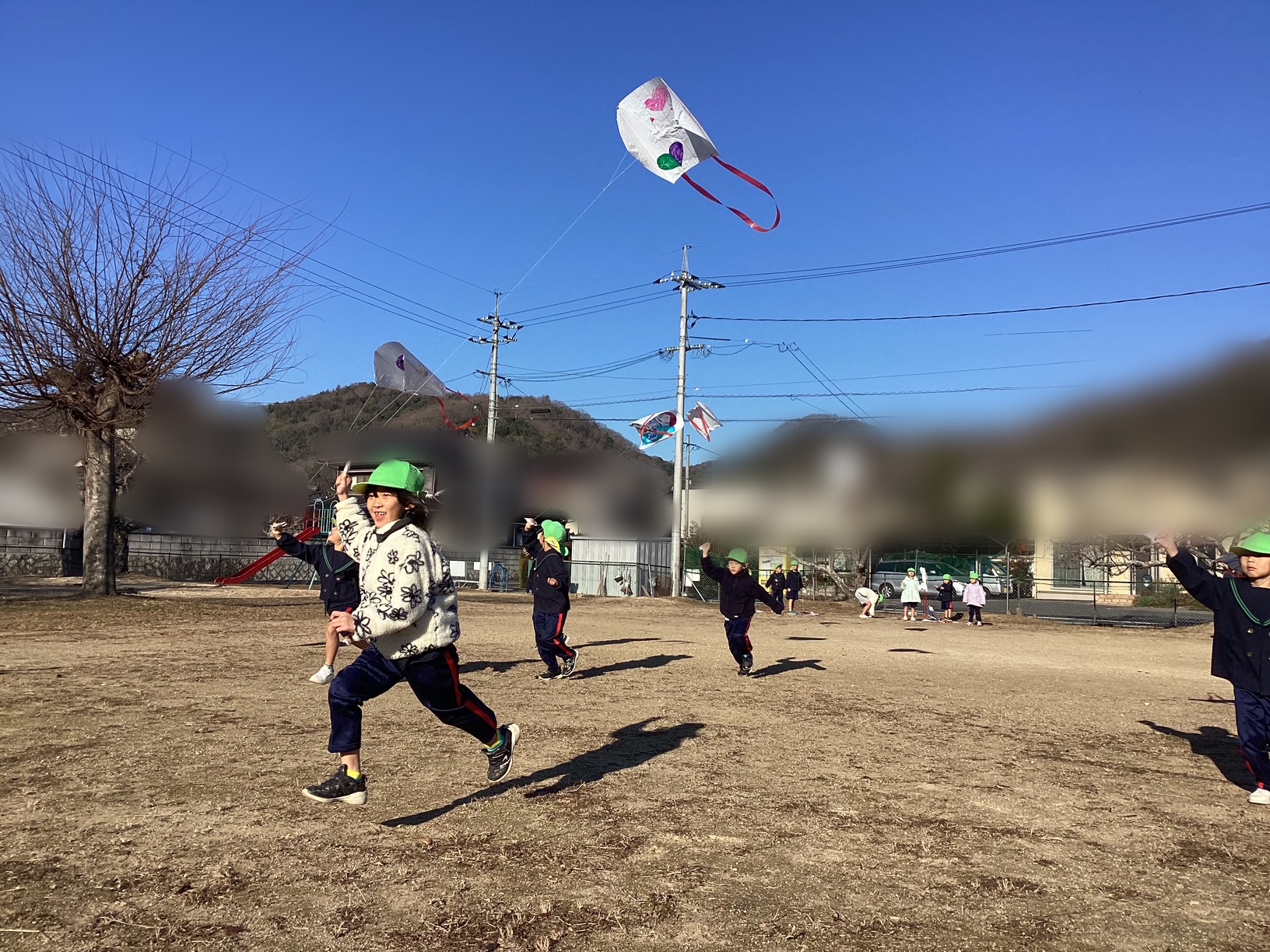 手作りの凧を持って、公園に凧あげに行きました! 上手にあげられて、とっても楽しそうでしたよ♪