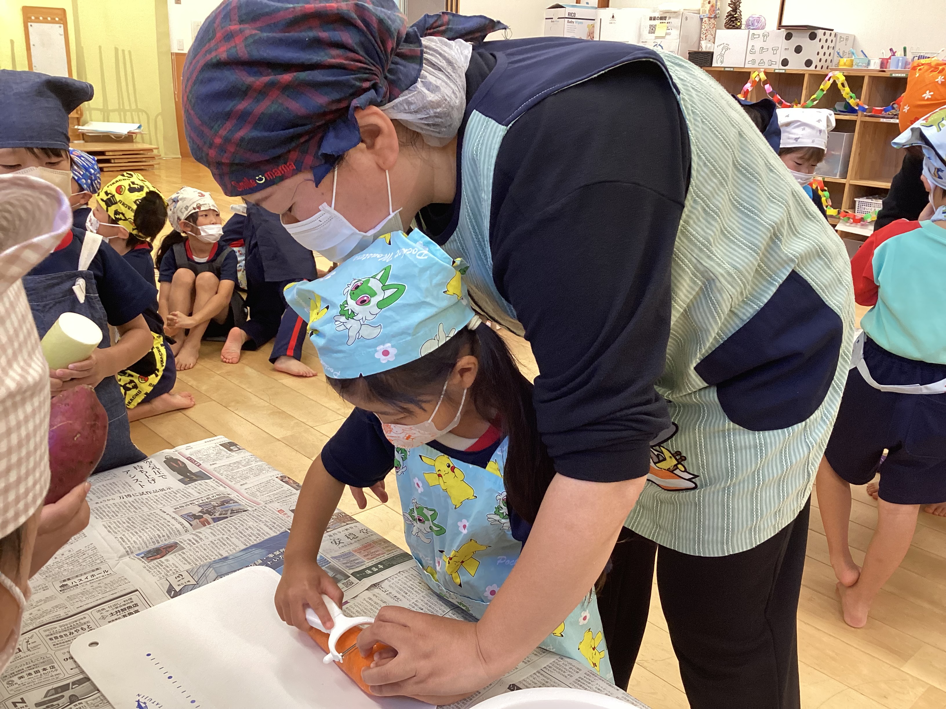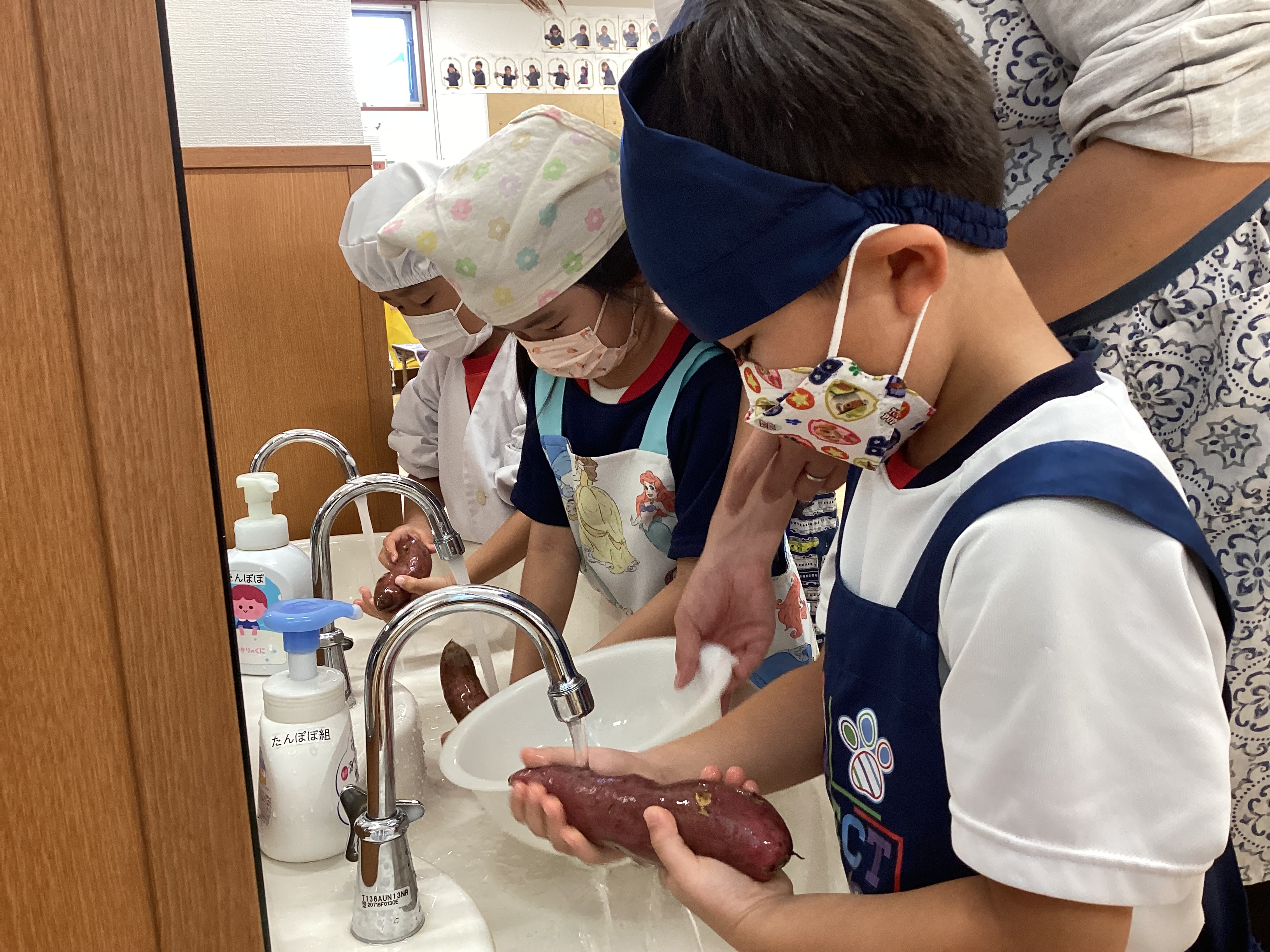 自分たちで育てたさつまいもを使ってクッキングをしました。 2回目のクッキングということもあり、慣れた手つきで野菜を洗っていきます✨️