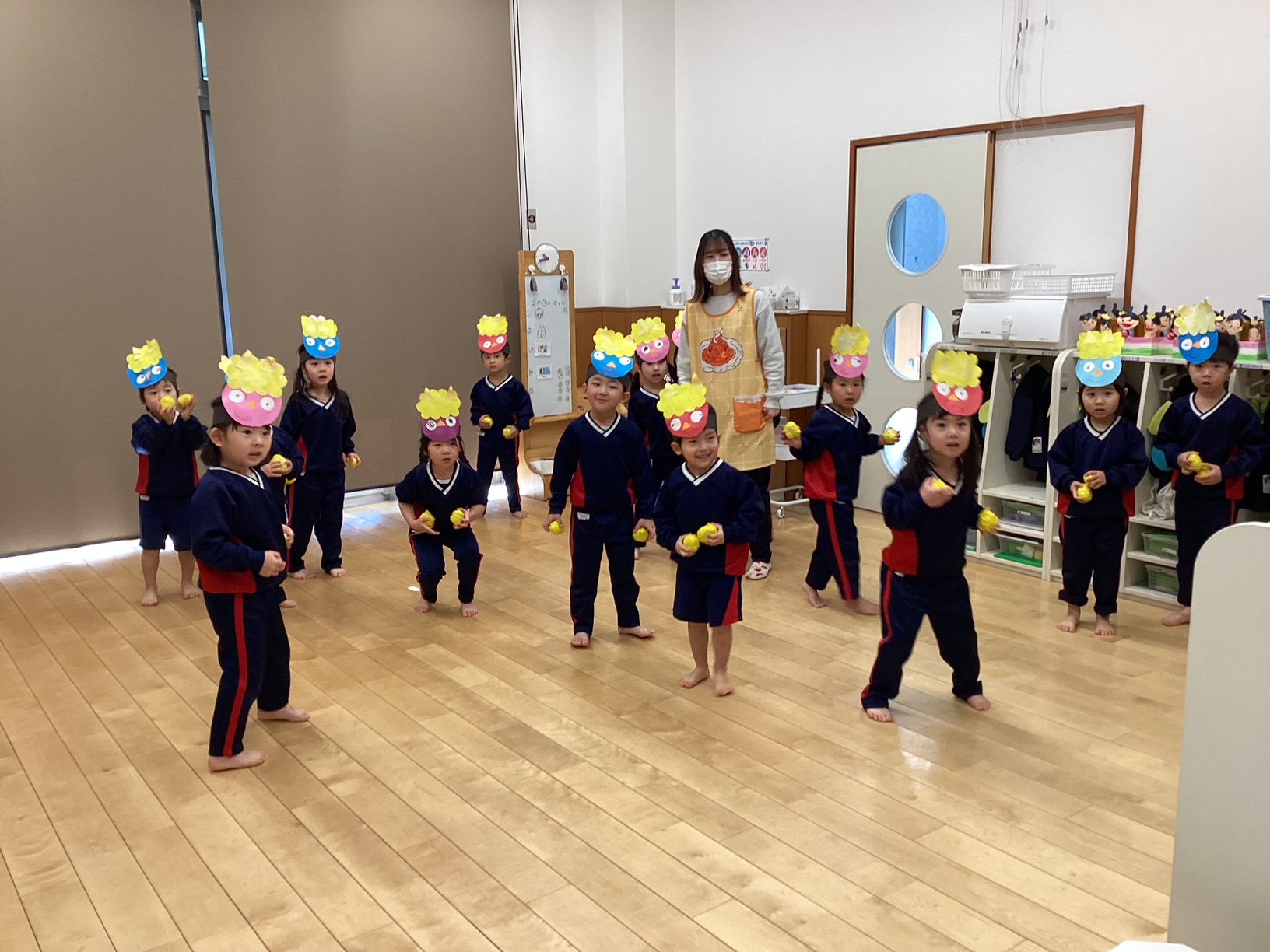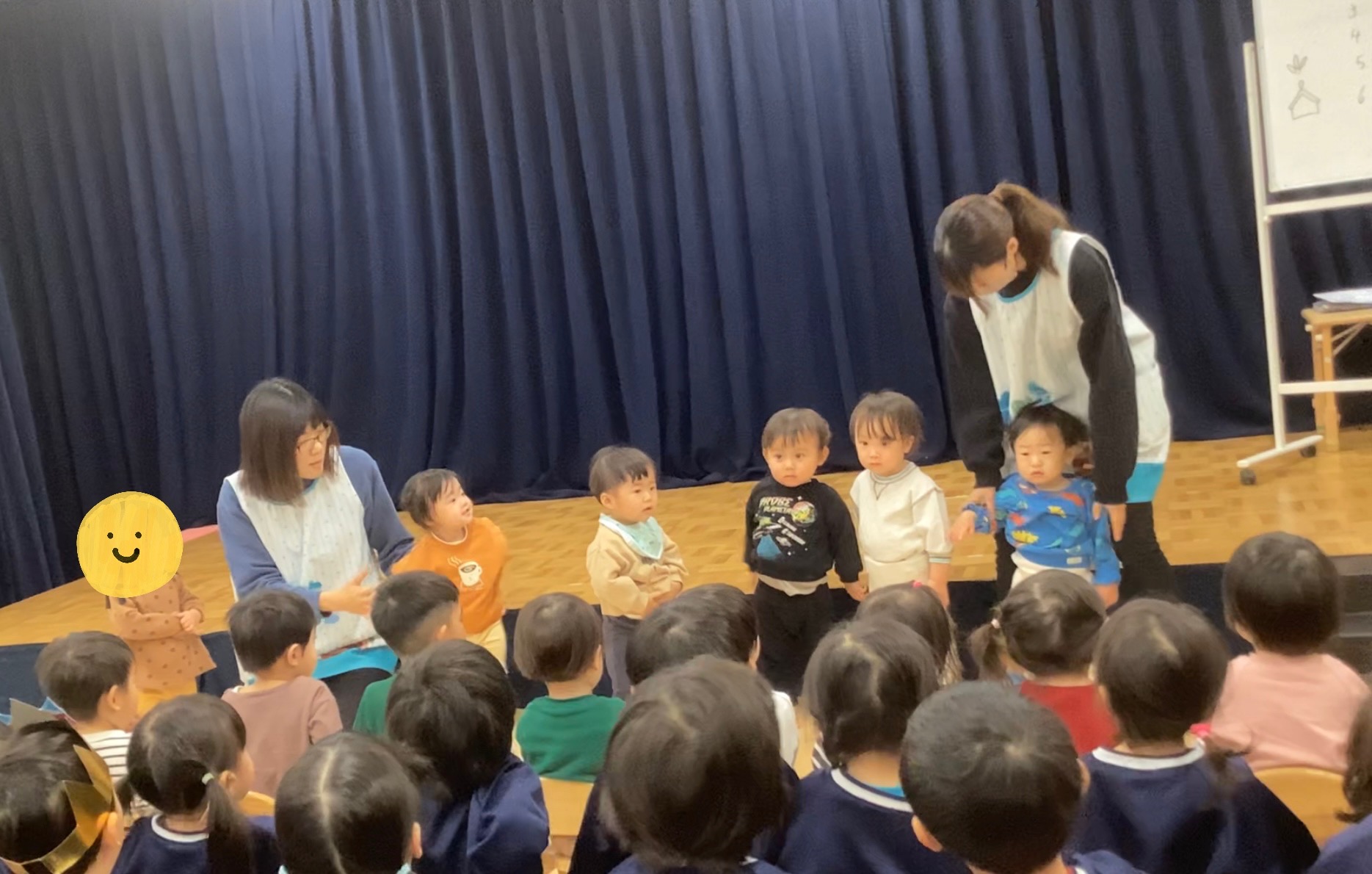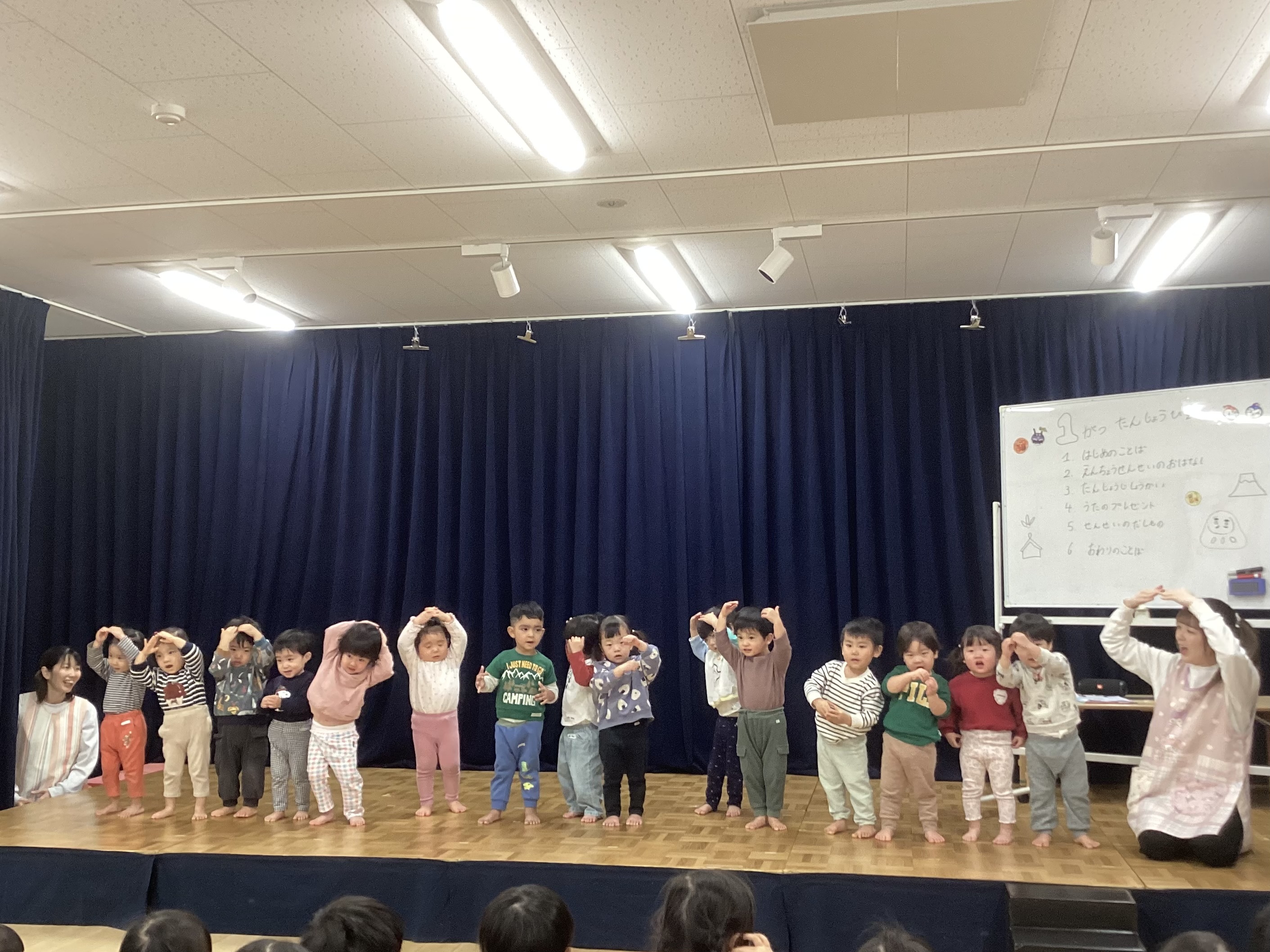 1歳クラスのちゅうりっぷ組さんは「ゆきだるまのチャチャチャ」を歌いながら踊ってくれました! みんなニコニコ笑顔で踊っていました✨️
