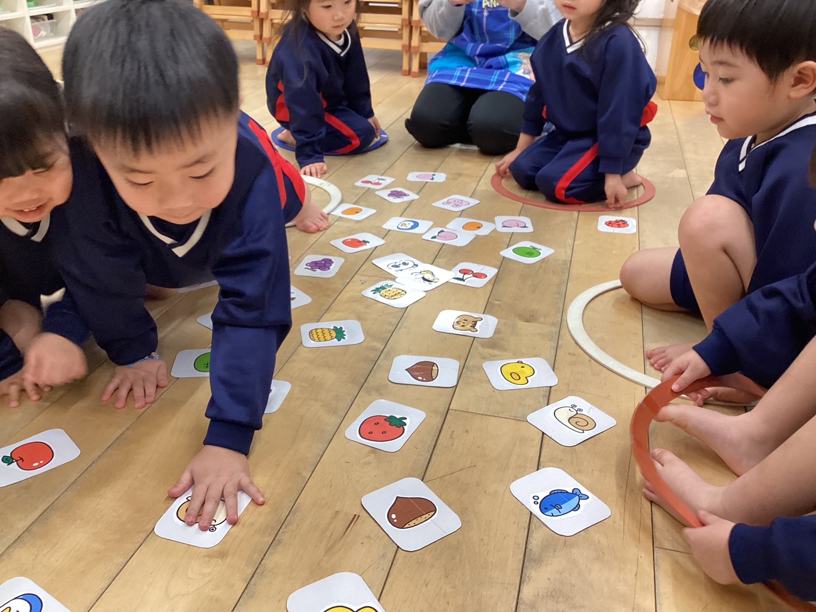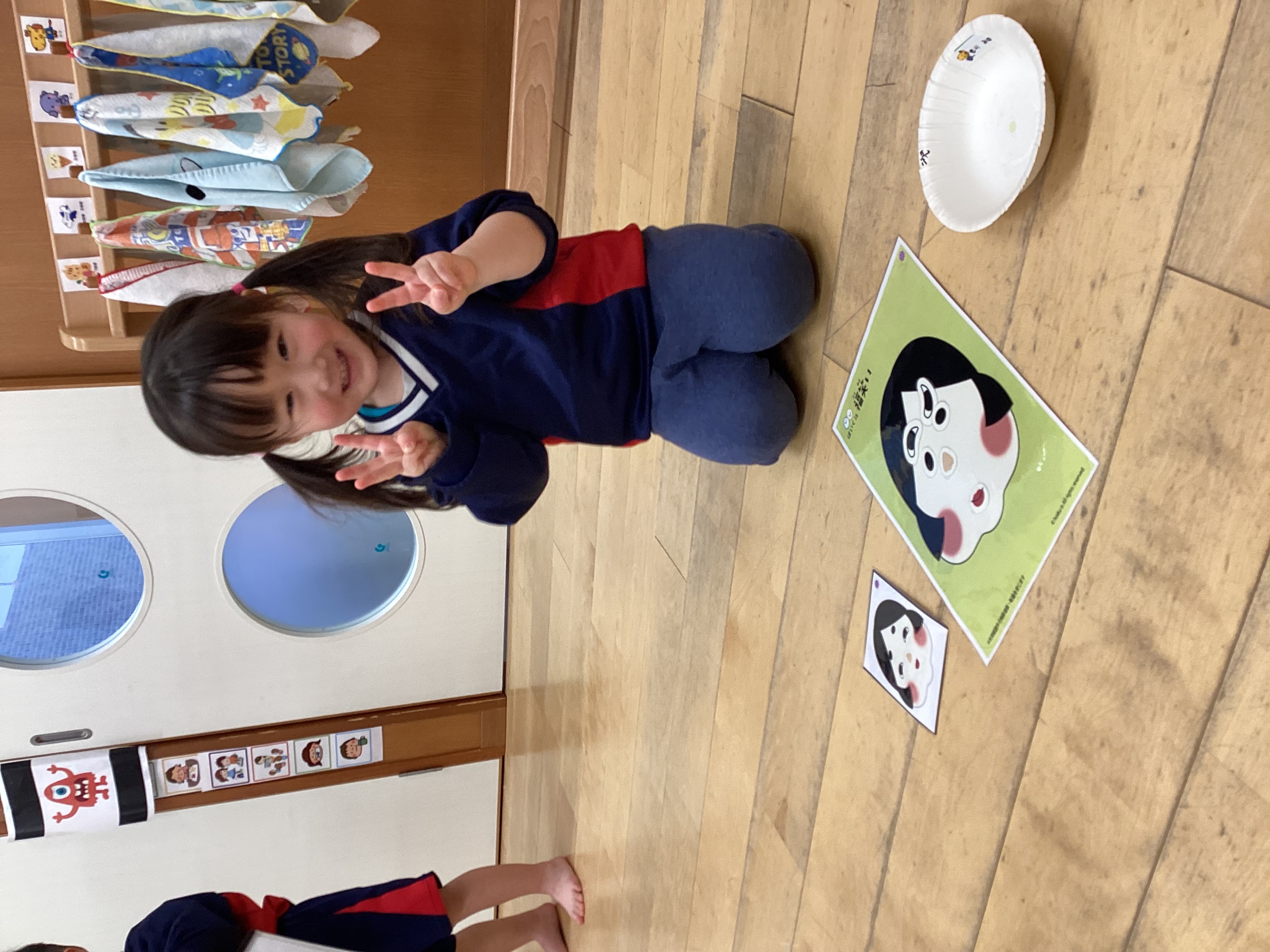 お正月遊びでは絵合わせかるたをしました!「はい!」と返事をしながらカルタをとる姿がとっても可愛かったです♪