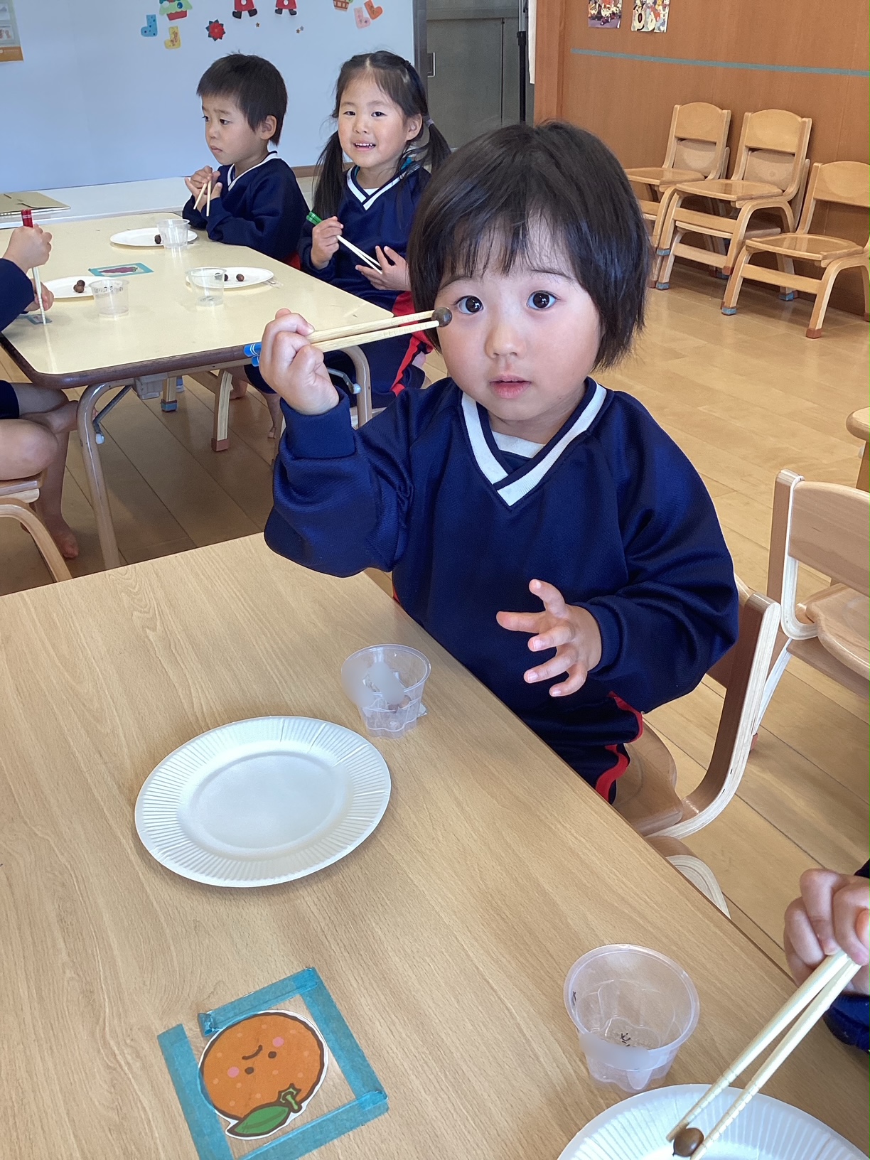 どんぐりを使った秋ならではの遊びもしています♪箸で掴めてびっくり!