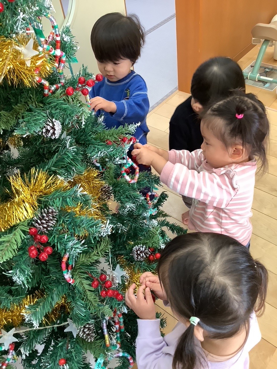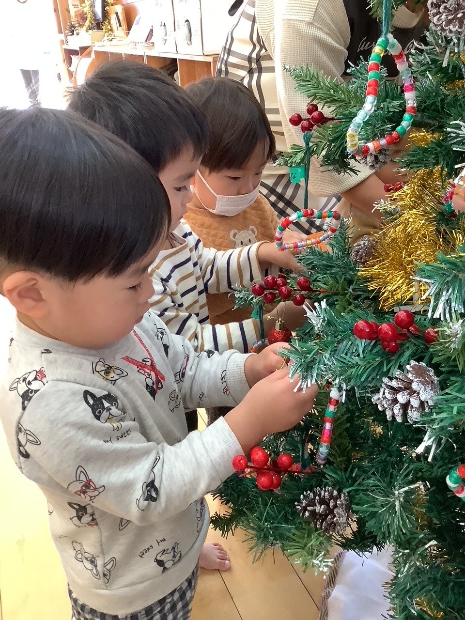 宝探しで見つけたクリスマスツリーの飾りを飾ったよ♪