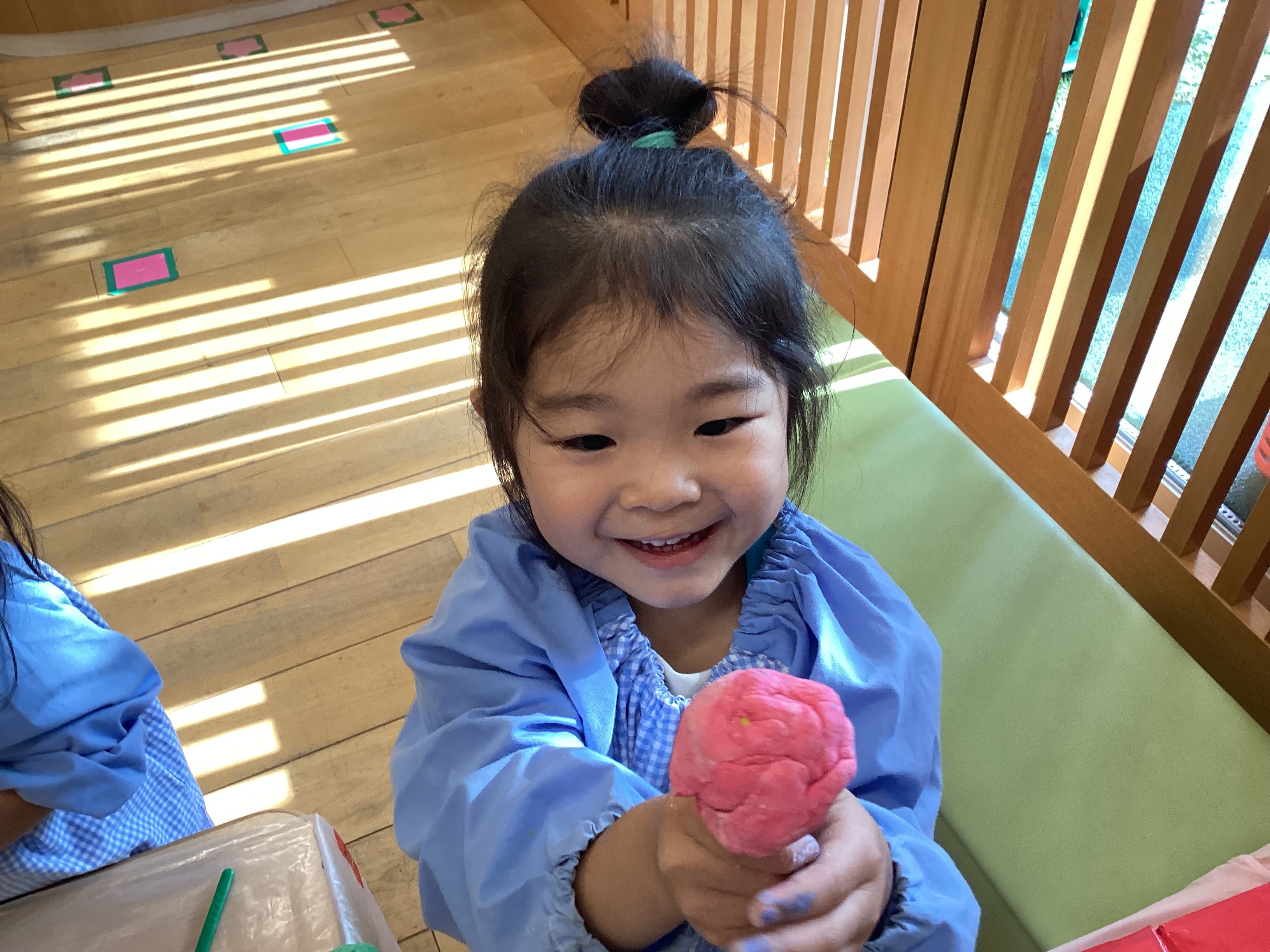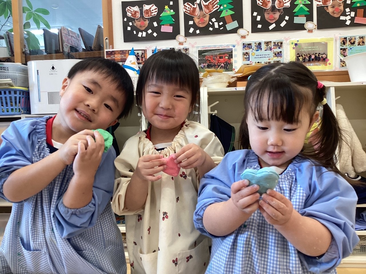 小麦粉粘土をしました!型抜きも上手に出来るようになってきたもも組さんです!