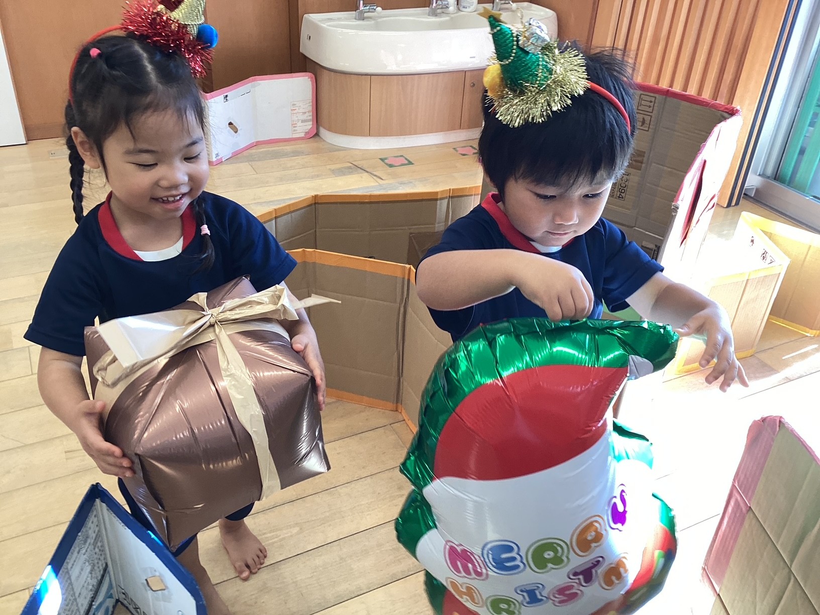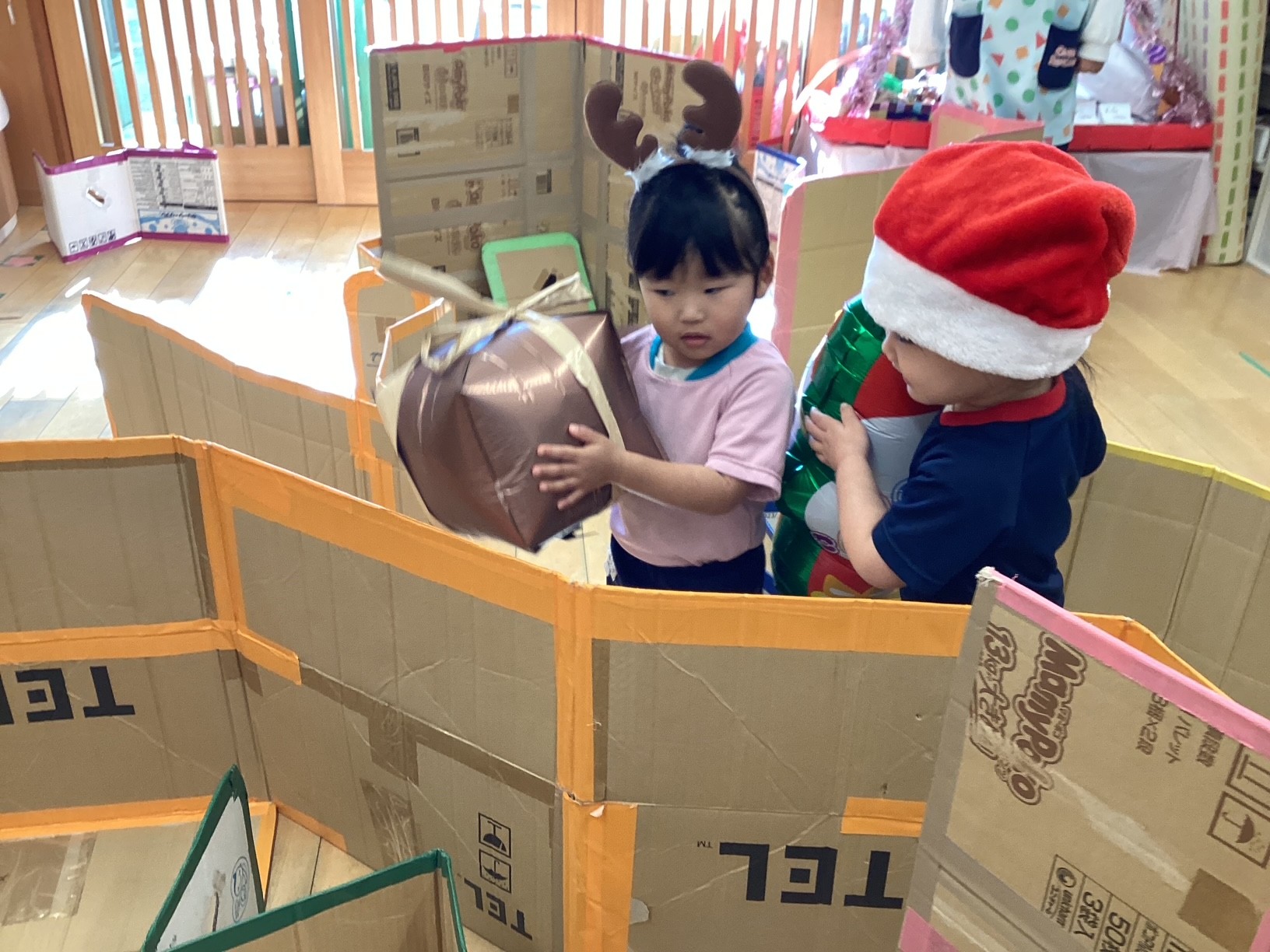 サンタさんとトナカイさんになりきってプレゼントを隠したよ