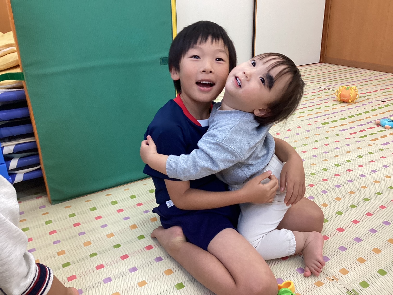 たくさん遊んでくれるひまわり組のお兄ちゃん!ぎゅーっと抱きついて離れません