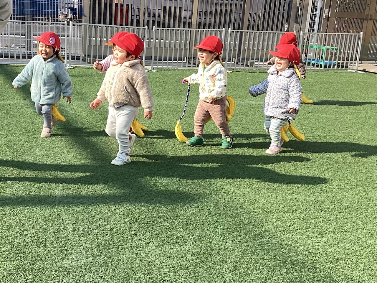みんなでバナナとりおにごっこをしましたよ♪ 走るのがとっても早くなったちゅうりっぷ組さんですよ✨
