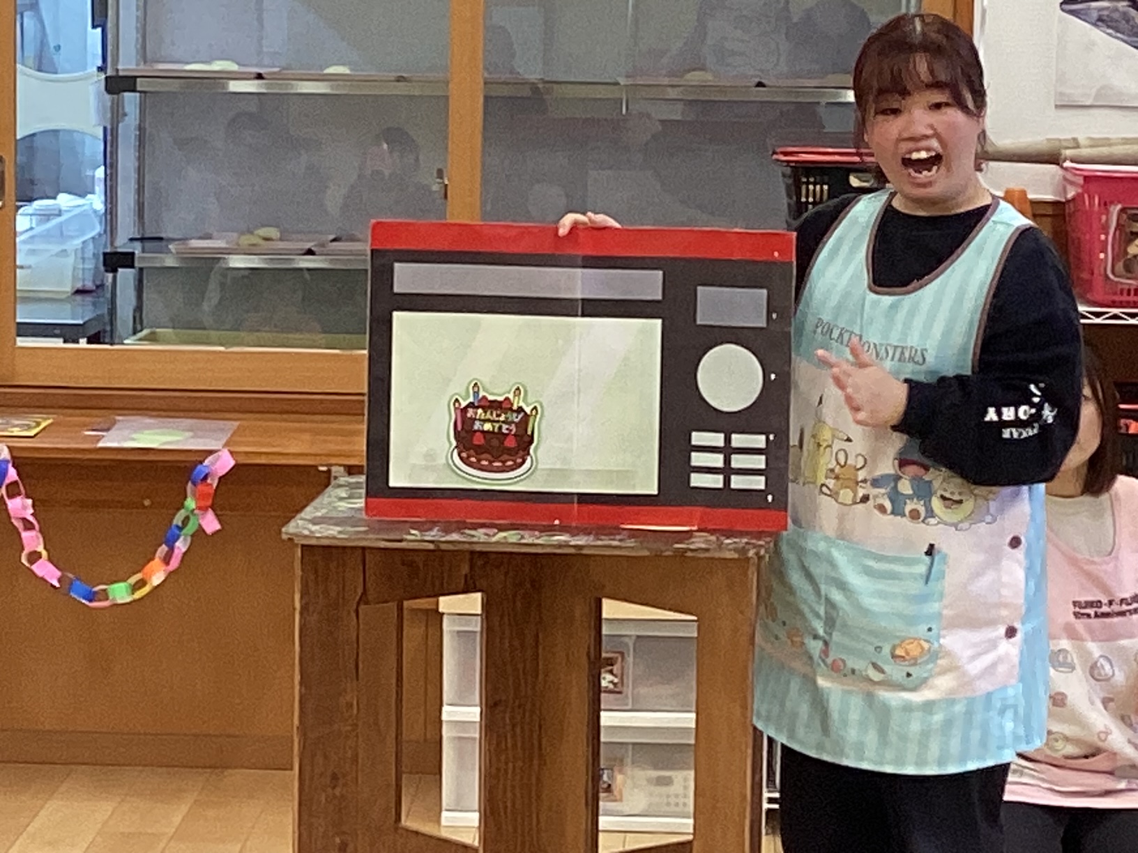 - 10月の食育は秋の食べ物についてお話をしました。 秋に食べると美味しい食べ物は何かな?と質問しながら紹介していきました。