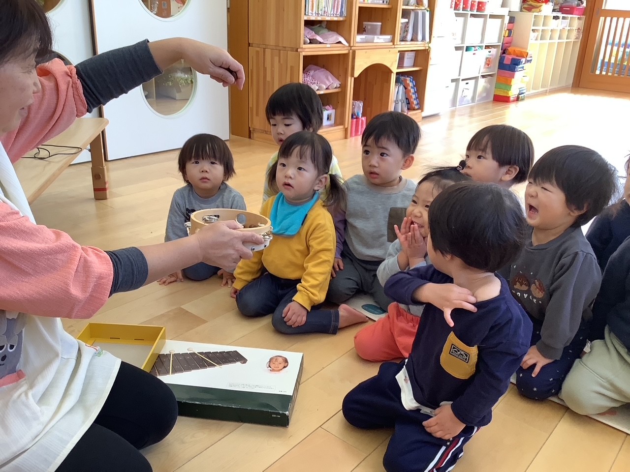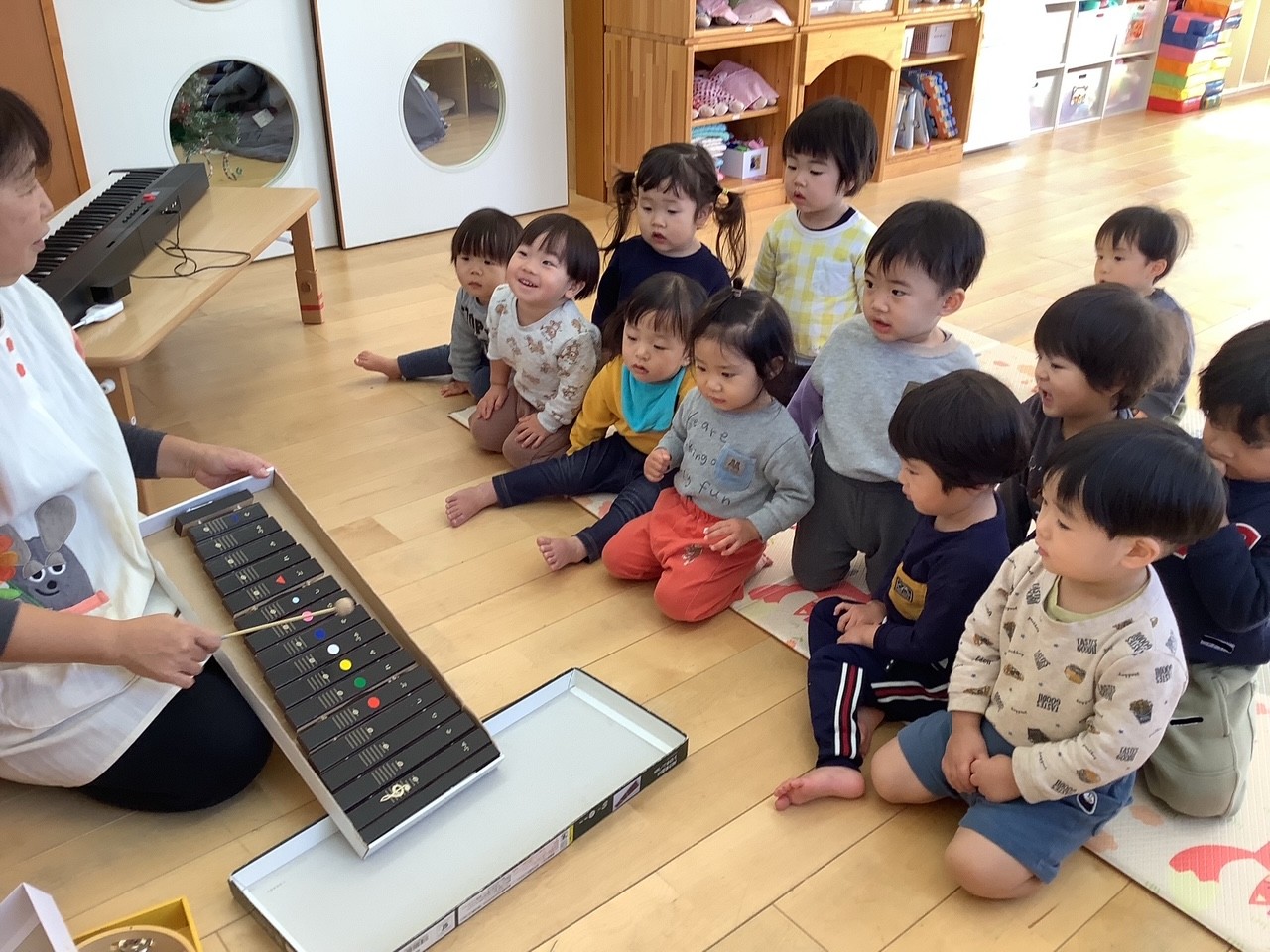 リトミックでは、久しぶりに木琴の音を聴いたね! みんな、興味津々!音がなるたびに「あ!あ!」って反応してたね☺️