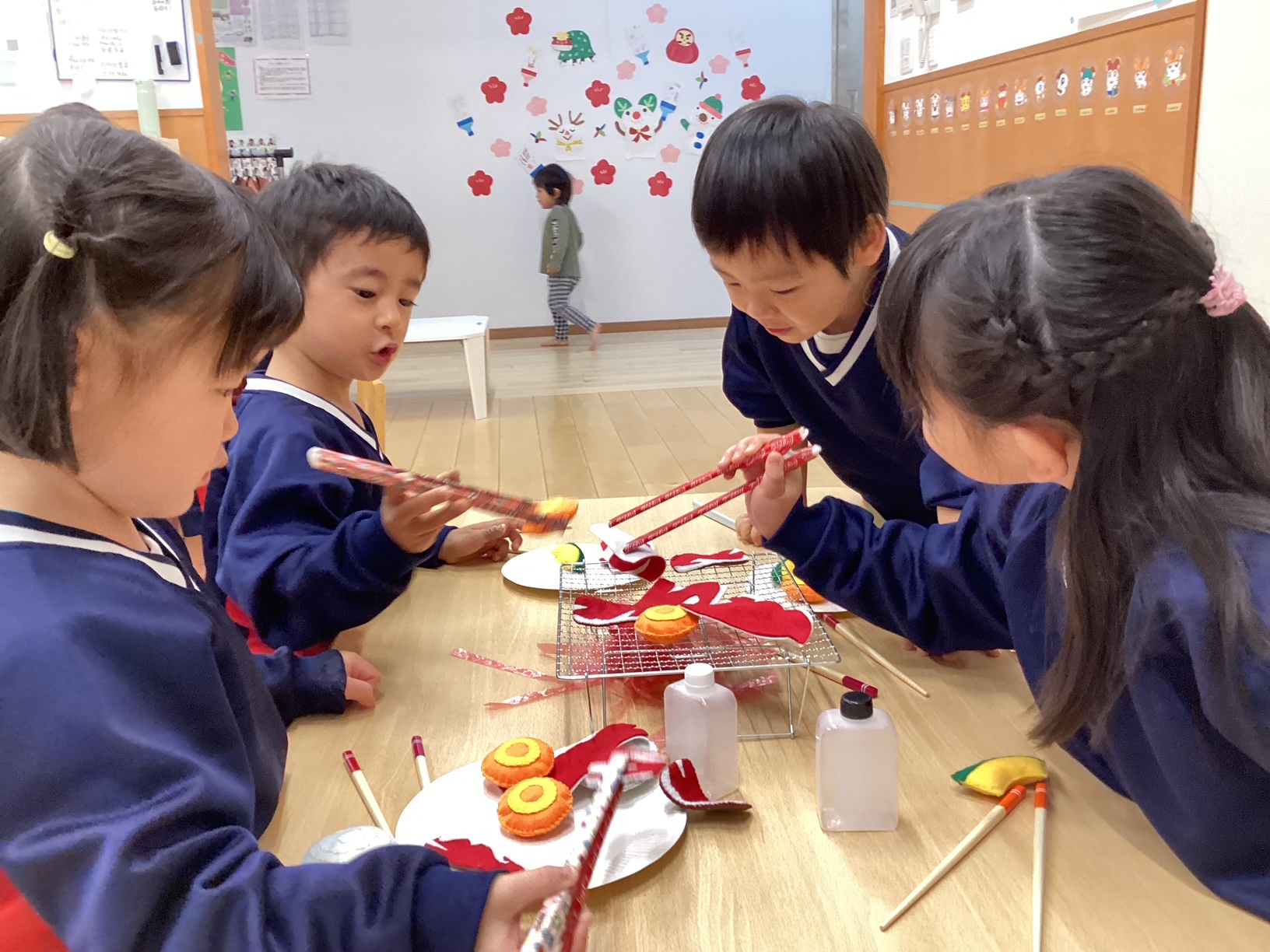 2月の節分会の豆まきで使う豆を、一生懸命製作中です! 鬼来るかなぁ、豆で退治するからいっぱい作らなきゃ!と、話をしながら取り組んでいました!