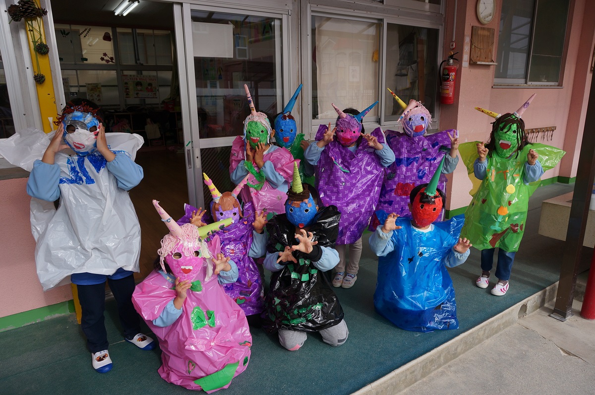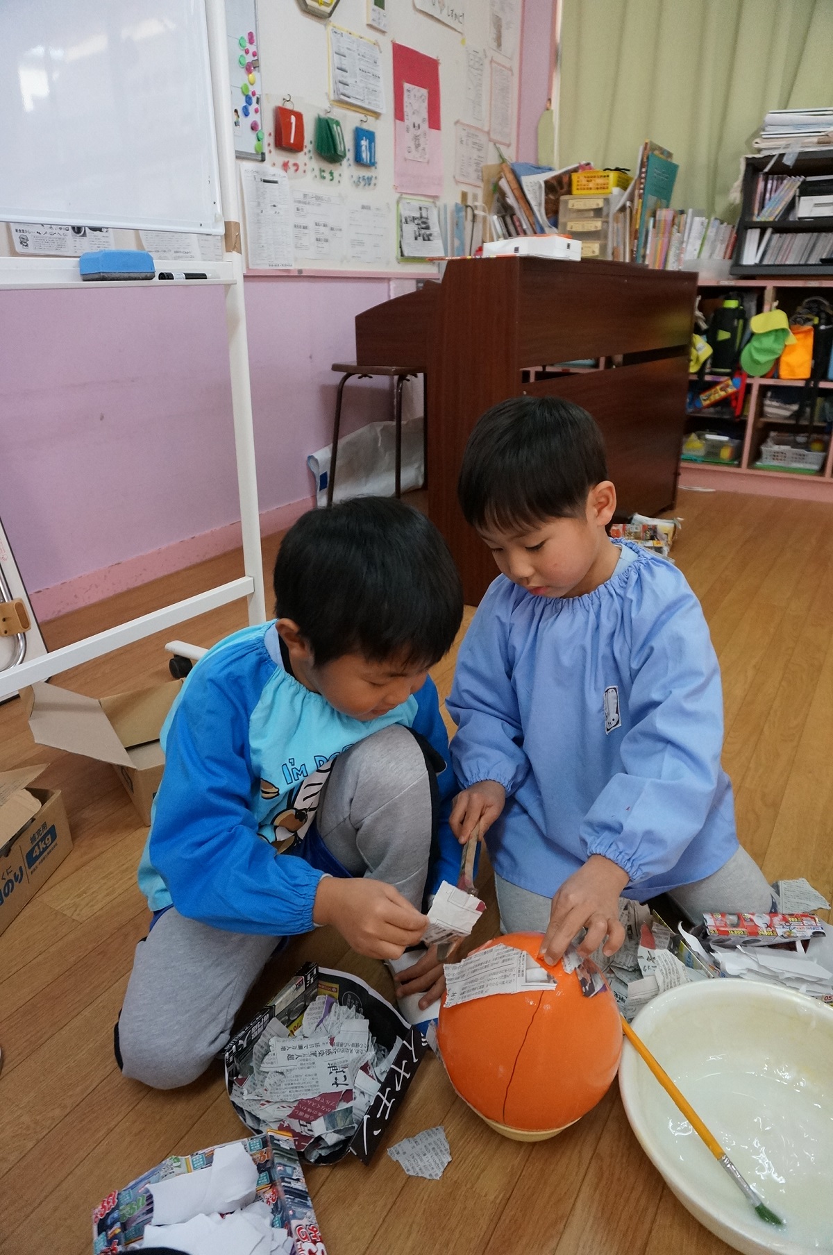 - みんなにたくさん走ってほしくて先生がみんなが集めて入れた玉の箱をこっそりひっくり返したのを見つけて「もう~先生ったら~落としちゃったの~」と子どもたち!ひっくり返さないように入ったようです。かわいいけど、玉が入るのかな?