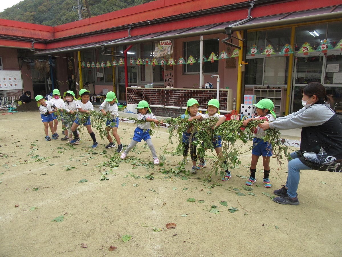 芋パーティー みんなで三輪車競争や綱引きをしました。