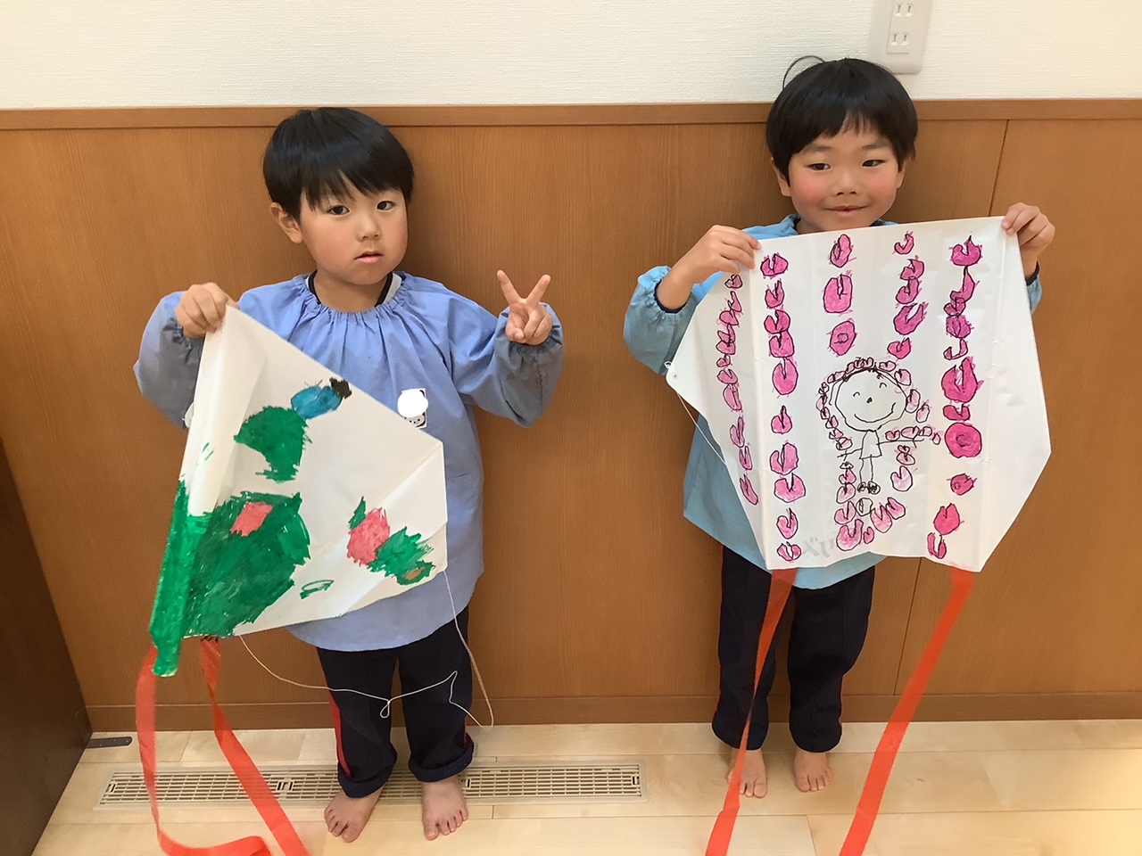 みんなで、凧揚げに絵を描いたよ☆