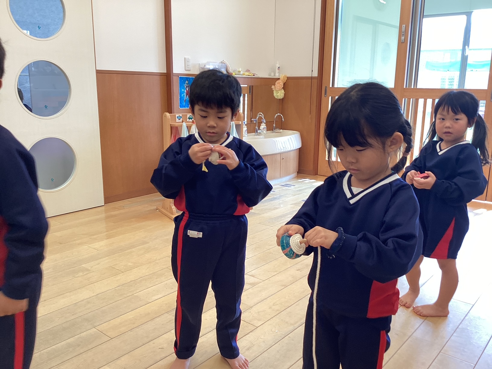 年明けから、こま回しの練習を頑張っている子どもたち☆