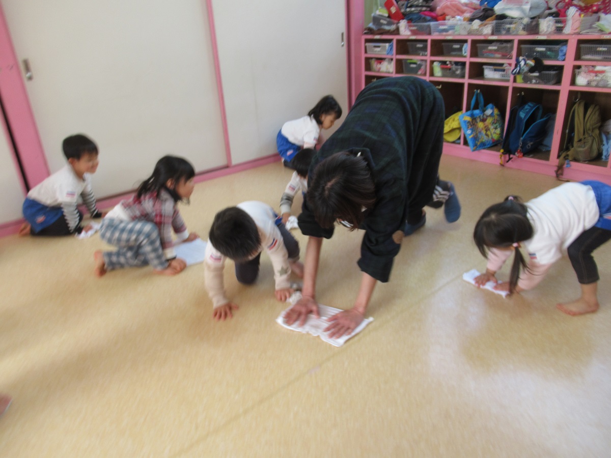 最後はみんなで「エビカニクス!」 少しの時間だったけど、一緒に遊べて嬉しかった子どもたちでした。