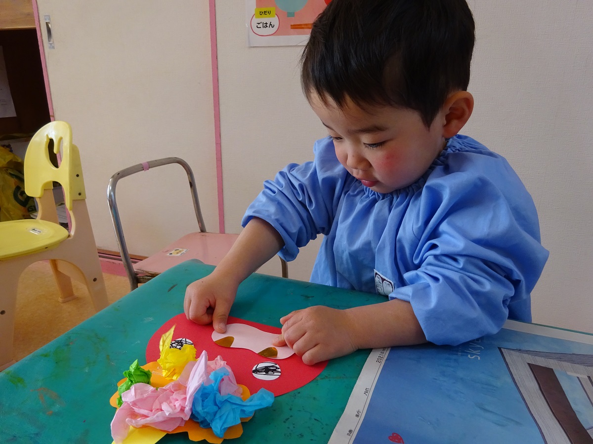小さくちぎって貼ったり、大きく大胆に貼ったり、一人一人のお芋ができましたよ☆