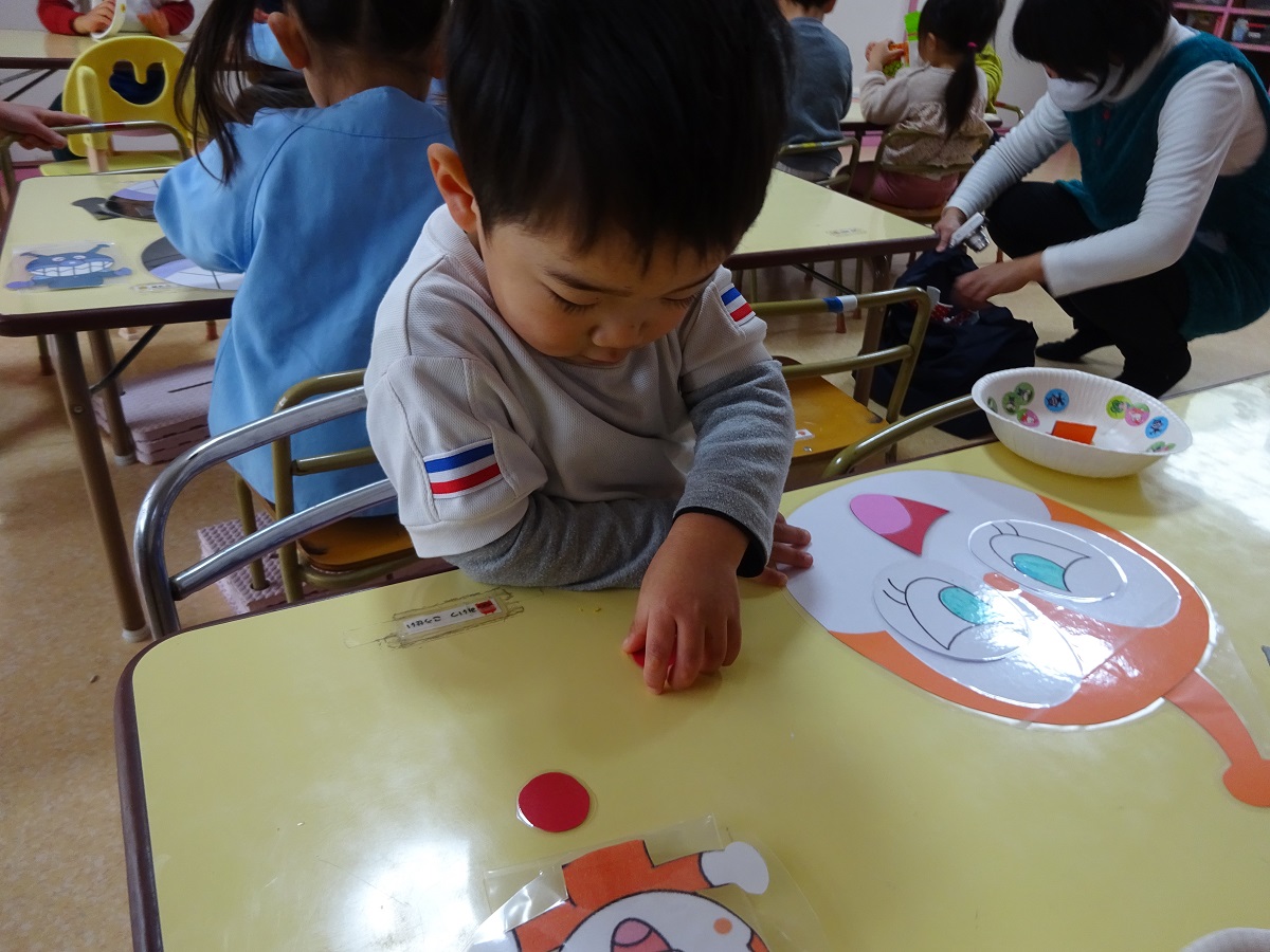 鬼のお面作りをしました。自分たちで好きな髪の毛を作りました。