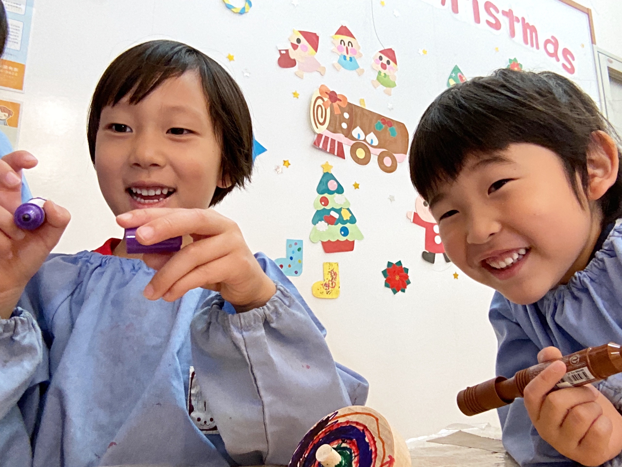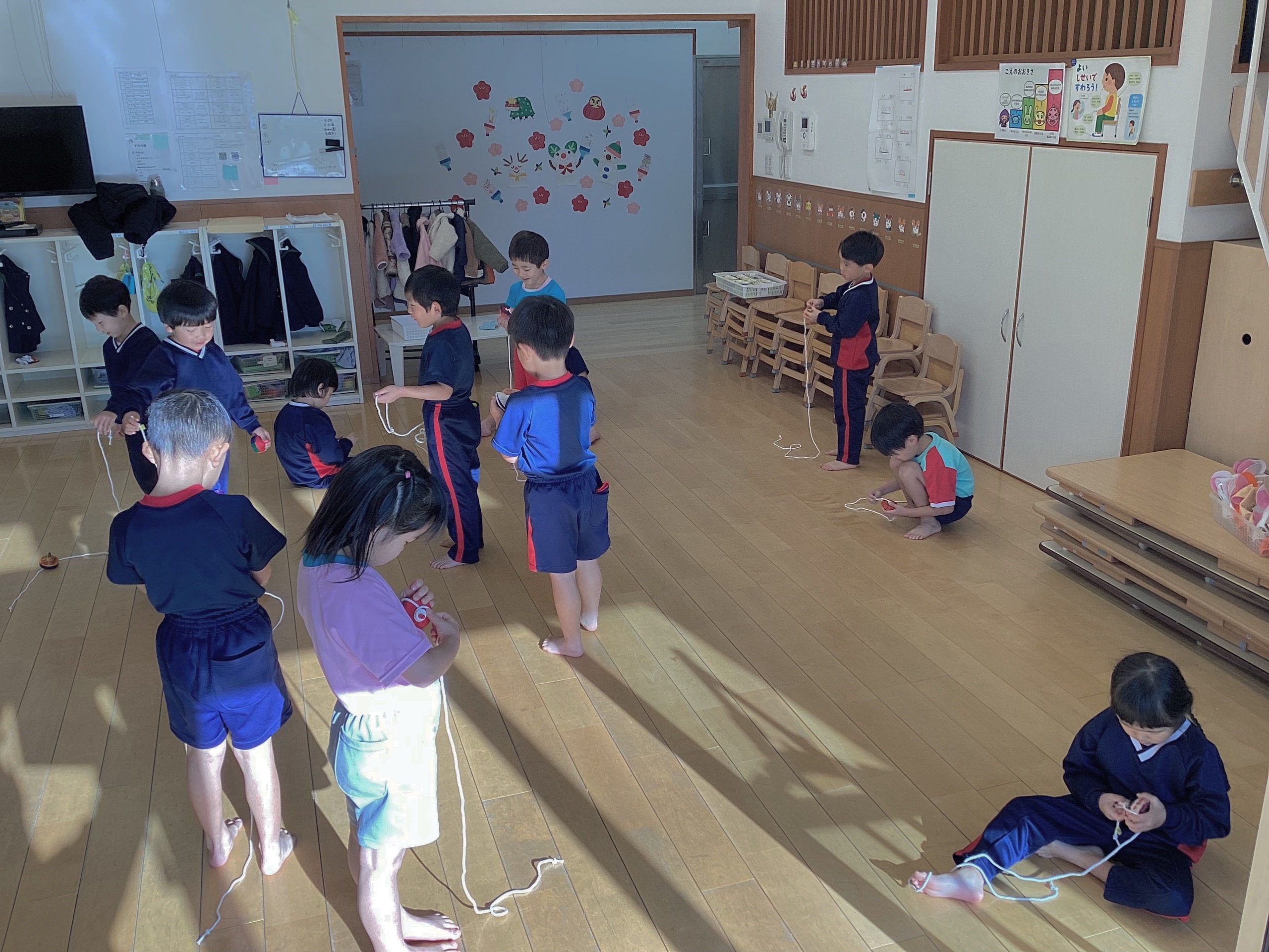 みんな集中して独楽を回す練習をしています! 朝の時間にも楽しんでいます✨️