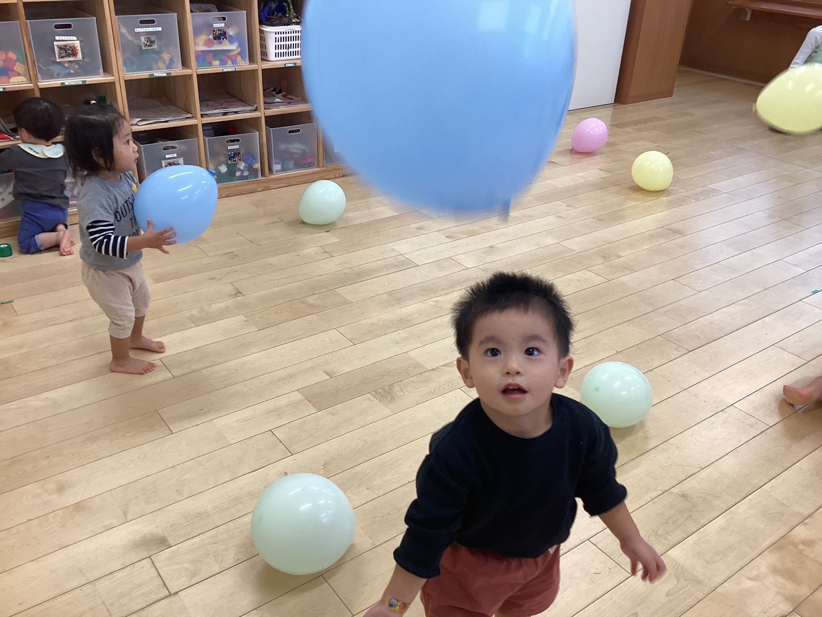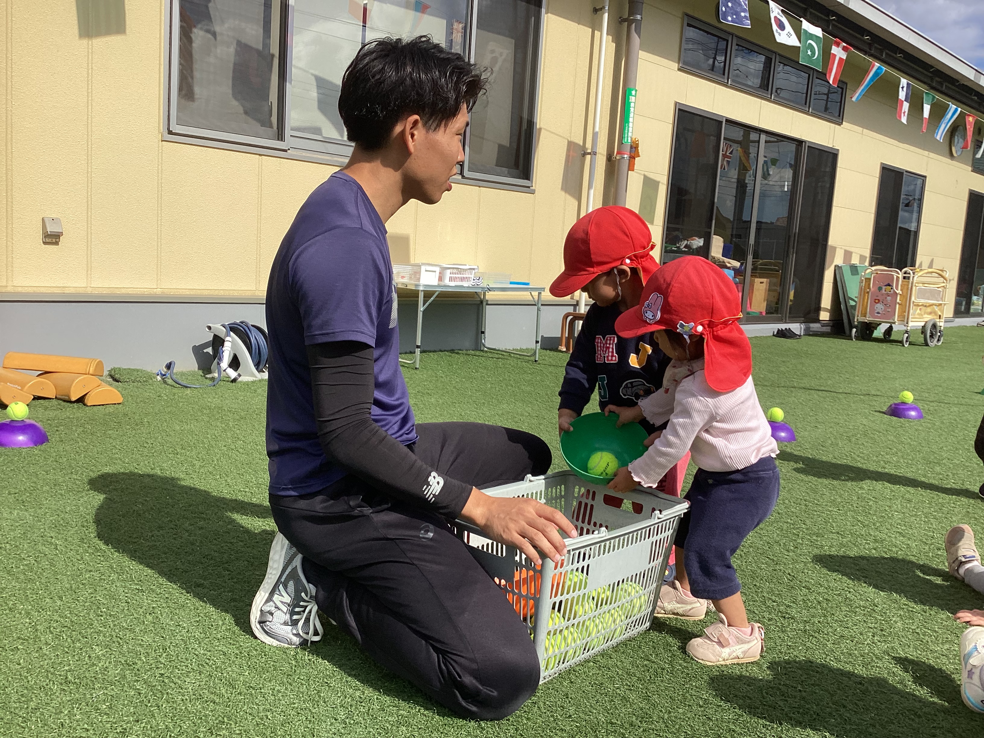 運動遊びではボールを集めたり投げたりして体を動かしてます!!