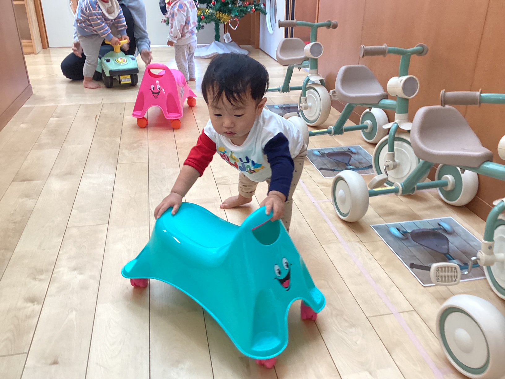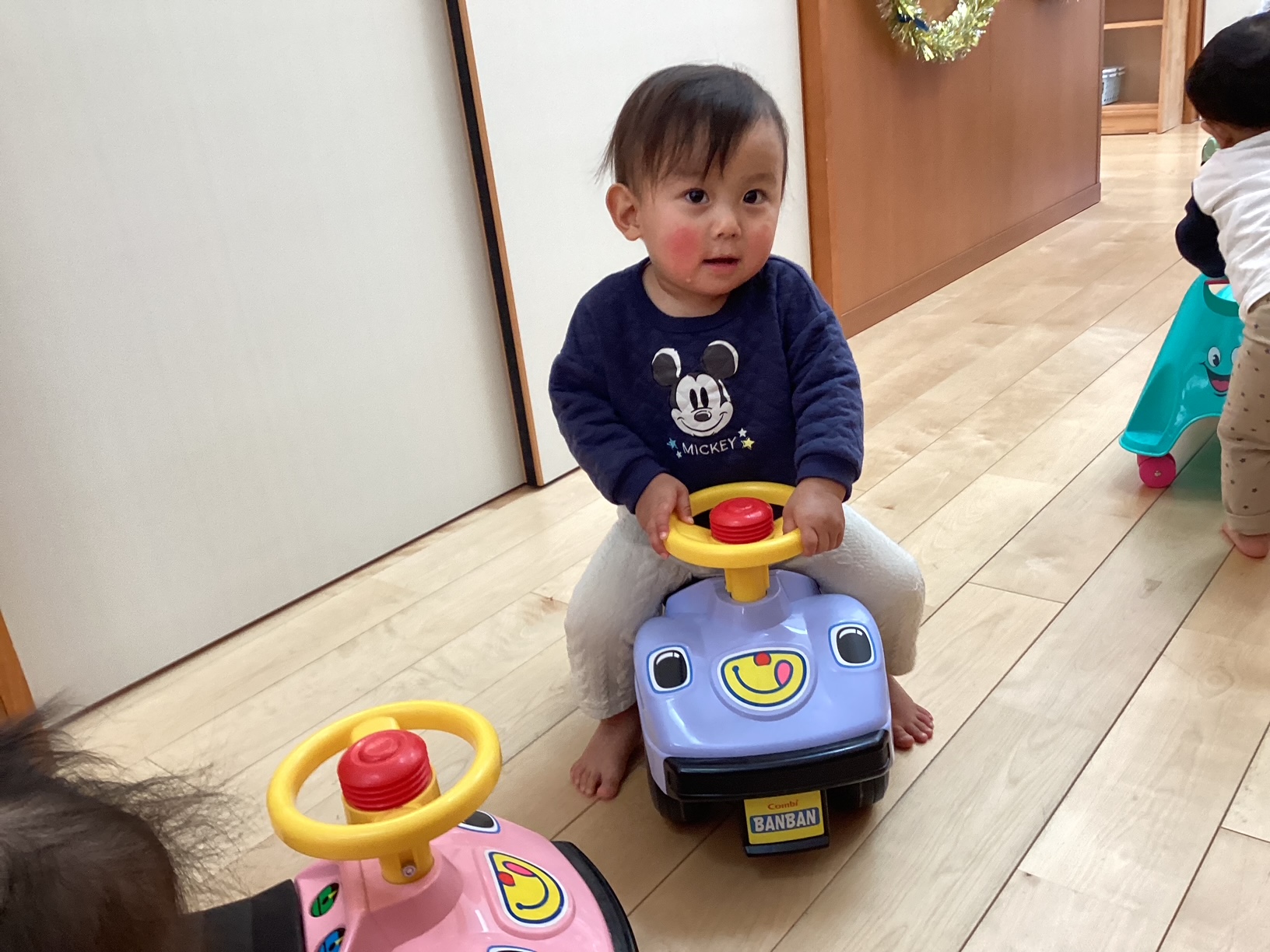 1人で乗れるようになり、廊下をビュンビュン進んでいます!ハンドルも動かすのが上手です✨