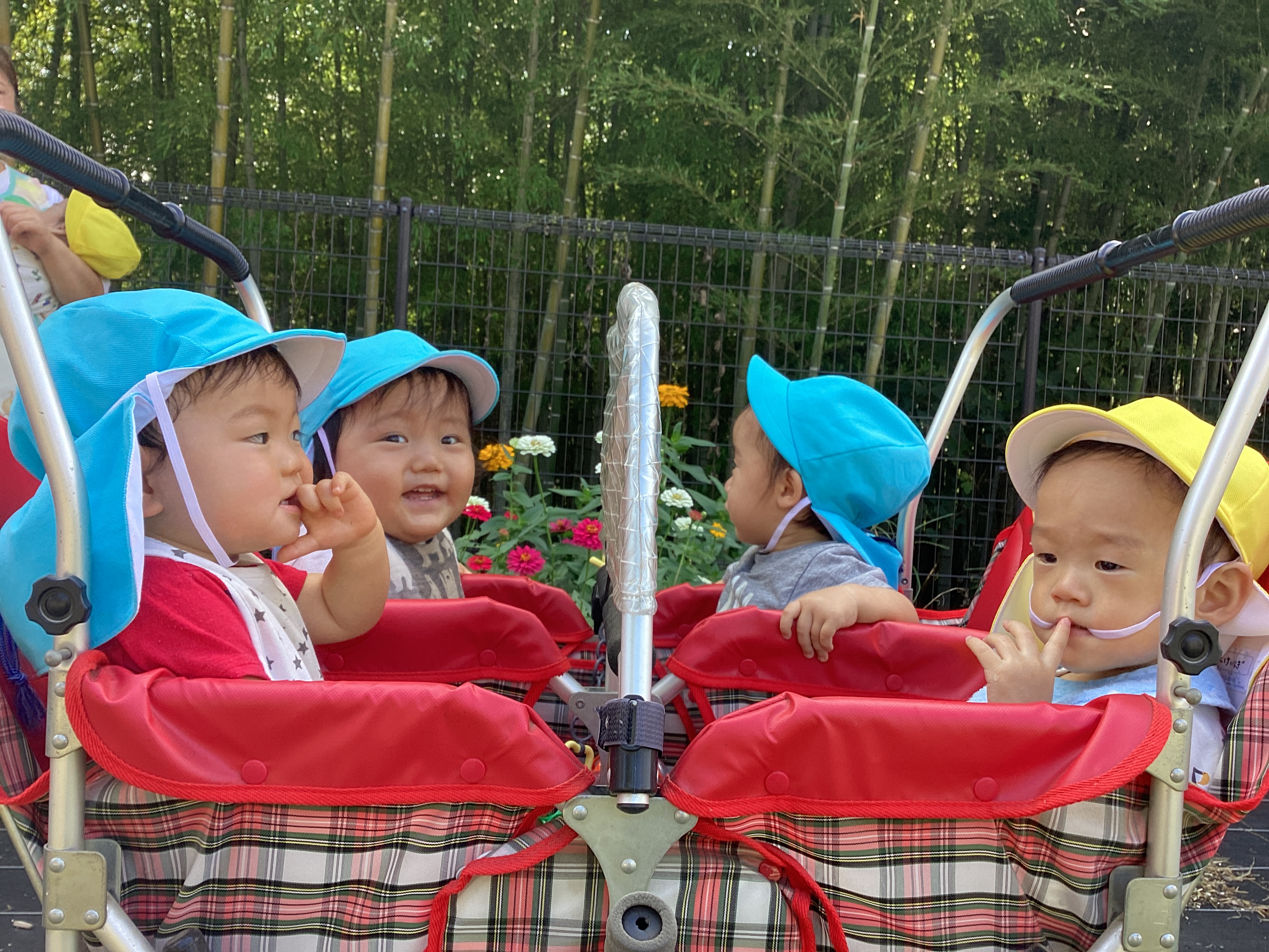 シャボン玉をしたよ。みんなで一緒に「ふ〜!」