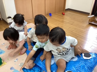 雨の日などでお外で遊べない日は感触遊びを楽しんでいます♪