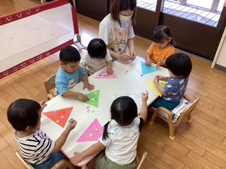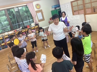さくら組さんでお店屋さんごっこをしました。「2個ください!」とお金を渡してやりとりを楽しんでいました。