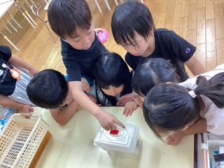 虫取りごっこをしたよ!虫取り網の先と虫さんについている磁石を慎重に合わせて…