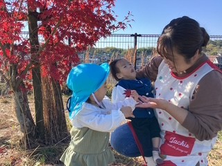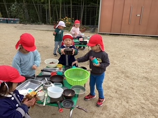 秋のおままごとをしました。葉っぱで何を作ろうかな?