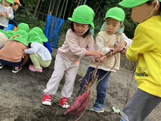 みんなで力を合わせて、うんとこしょっ!お芋とれた!