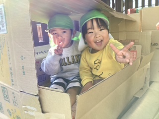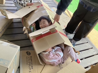 段ボールでお家を作ったよ!